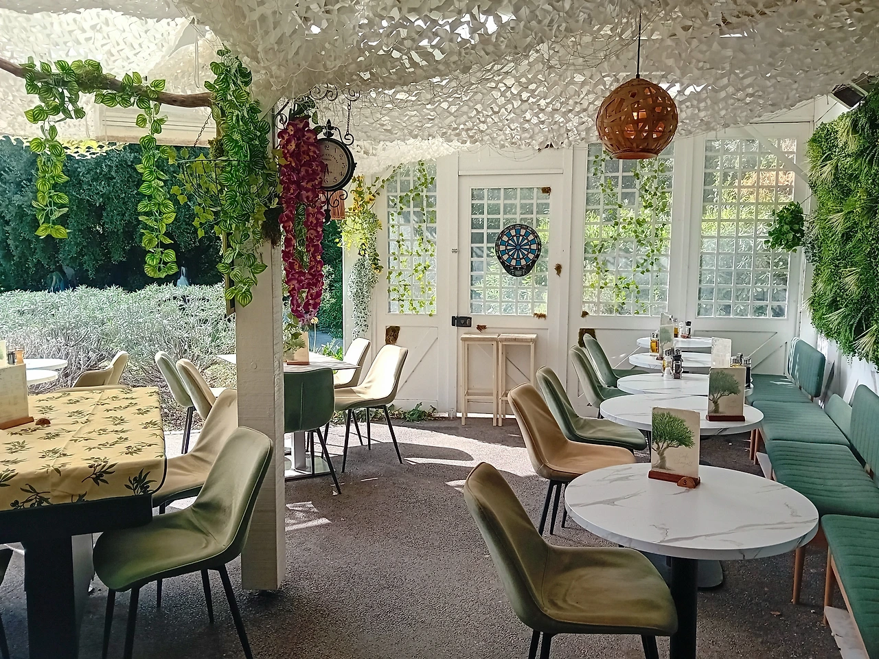 미술관내 공원 안 식당은 숲 속의 식당 같은 느낌이다. 야외 테이블, 의자, 파라솔 등이 다 초록초록해서 공원의 일부인 것 같다. 식당 건물은 벽 한 면이 오픈형이라 실내이면서 야외 같다.