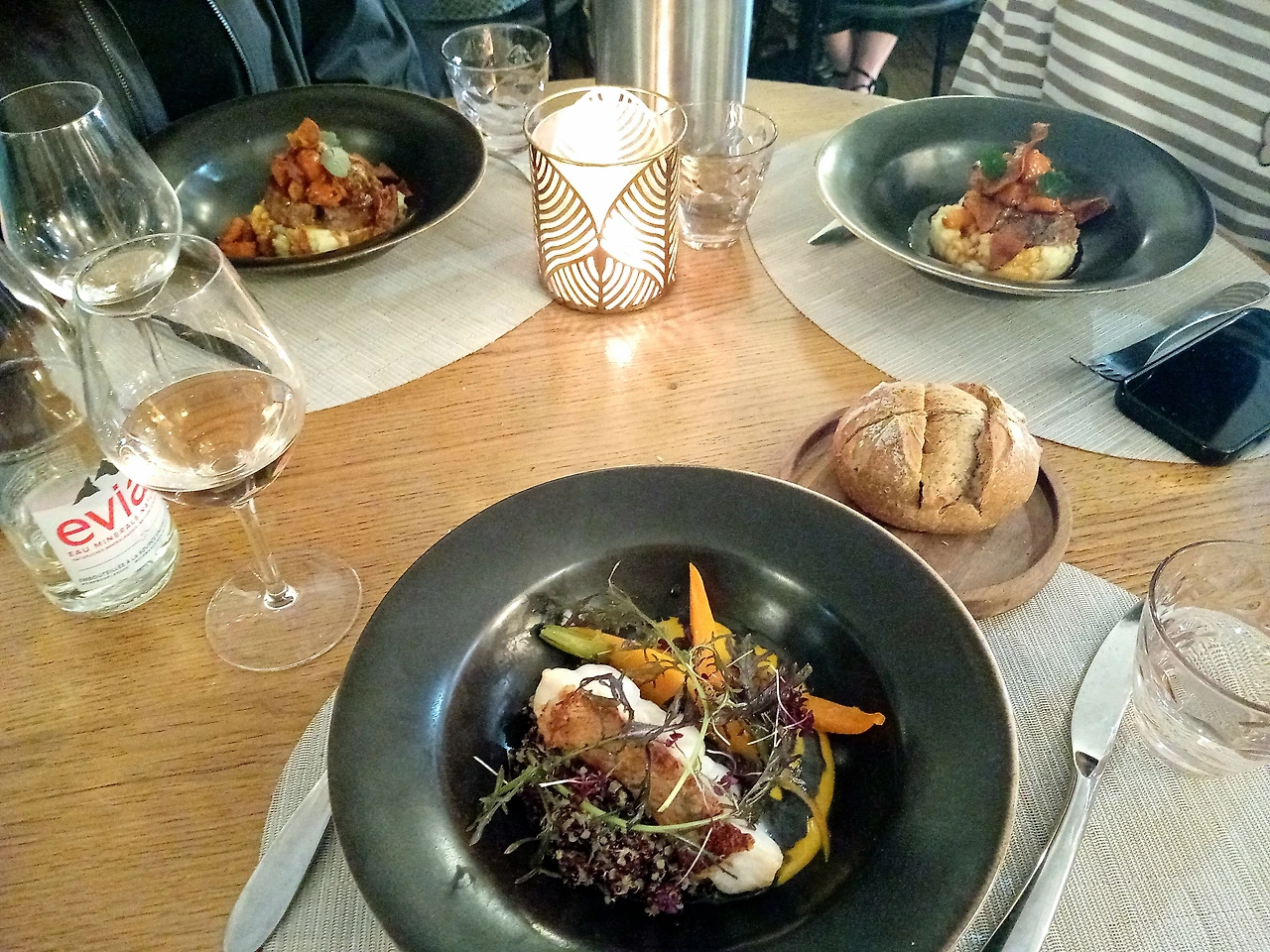 저녁 먹으러 L'Alchimie restaurant Nice에 갔다. 단일메뉴인 코스요리를 시켰는데, 스타터 2개, 메인, 디저트 다 맛있었다. 로제 와인 한병도 시켰는데 다 합쳐서 인당 55유로 (한화 9만 원 정도) 나왔다. 코스요리에 와인까지 이 정도 가격이면 가성비가 좋다. 아주 만족스러운 식당이다. 니스에 놀러 가시면 한 끼 정도 먹으러 가보시길 추천드린다.