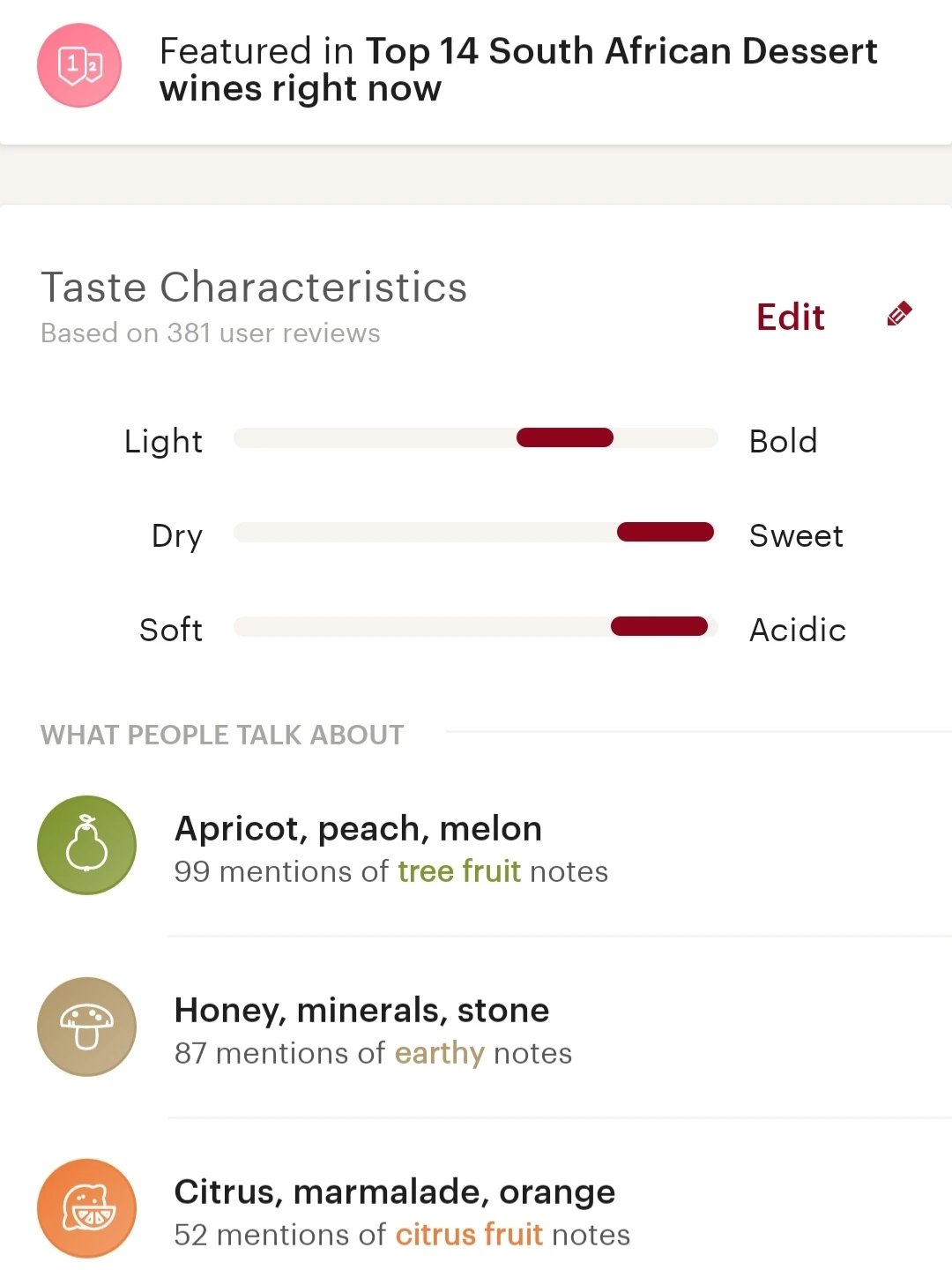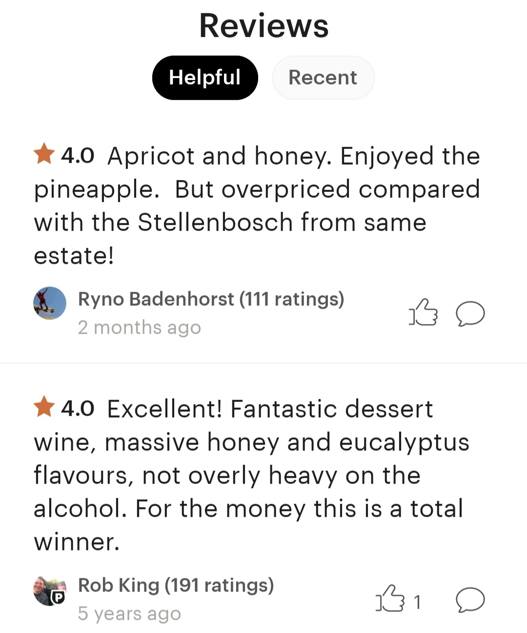 Rustenberg Sauvignon Blanc 2022/23, Stellenbosch, South Africa. 비비노 vivino에는 4.0, 나는 4.1 줬다. 디저트 와인이지만 아이스와인처럼 달지는 않다.