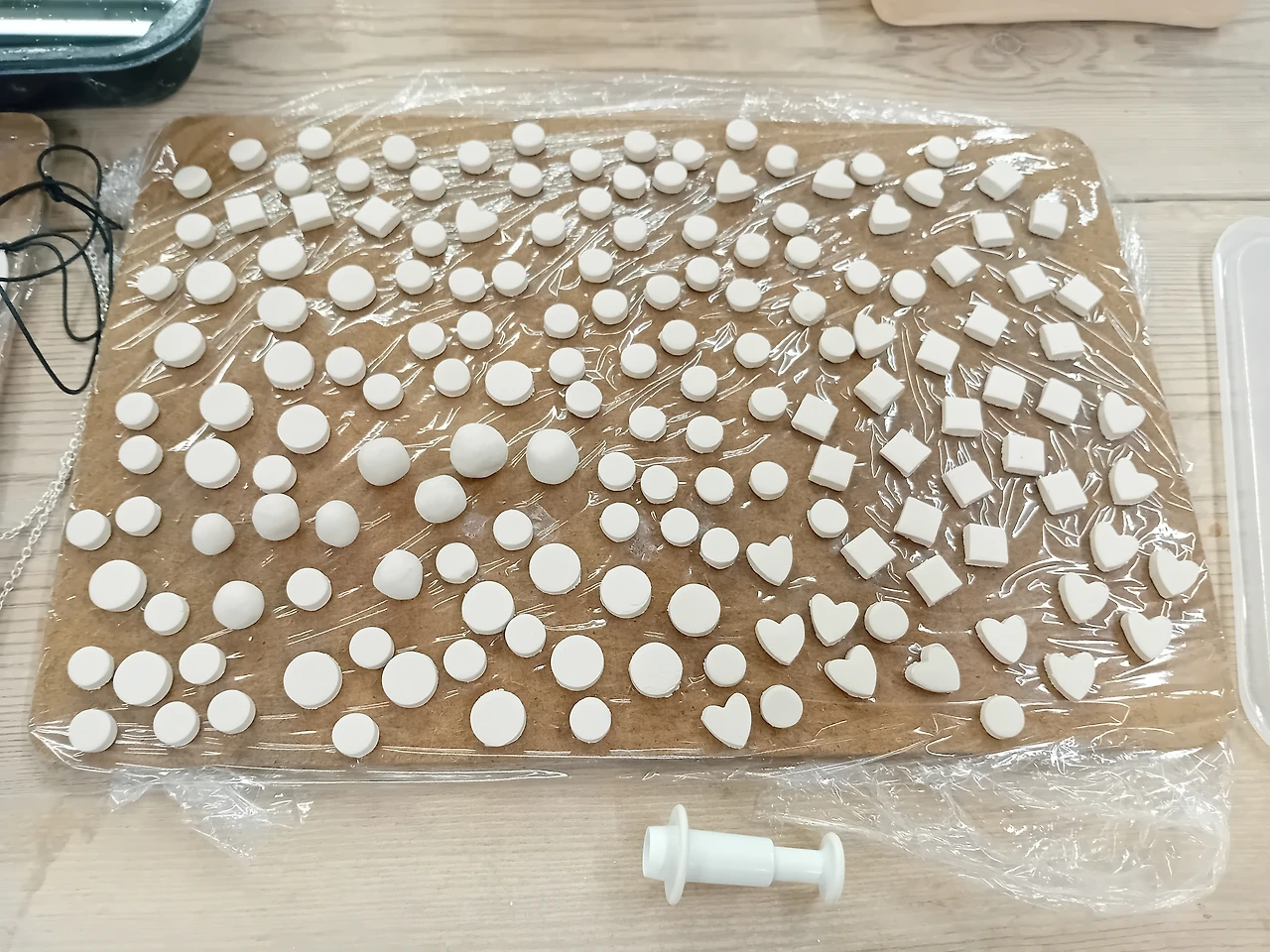 펜던트 목걸이 말고 뭔가 진주 목걸이 느낌으로 자기가 주렁주렁 달린 목걸이도 만들고 싶어서 쪼꼼쪼꼼한 동그라미, 네모, 하트를 엄청 찍어냈다.