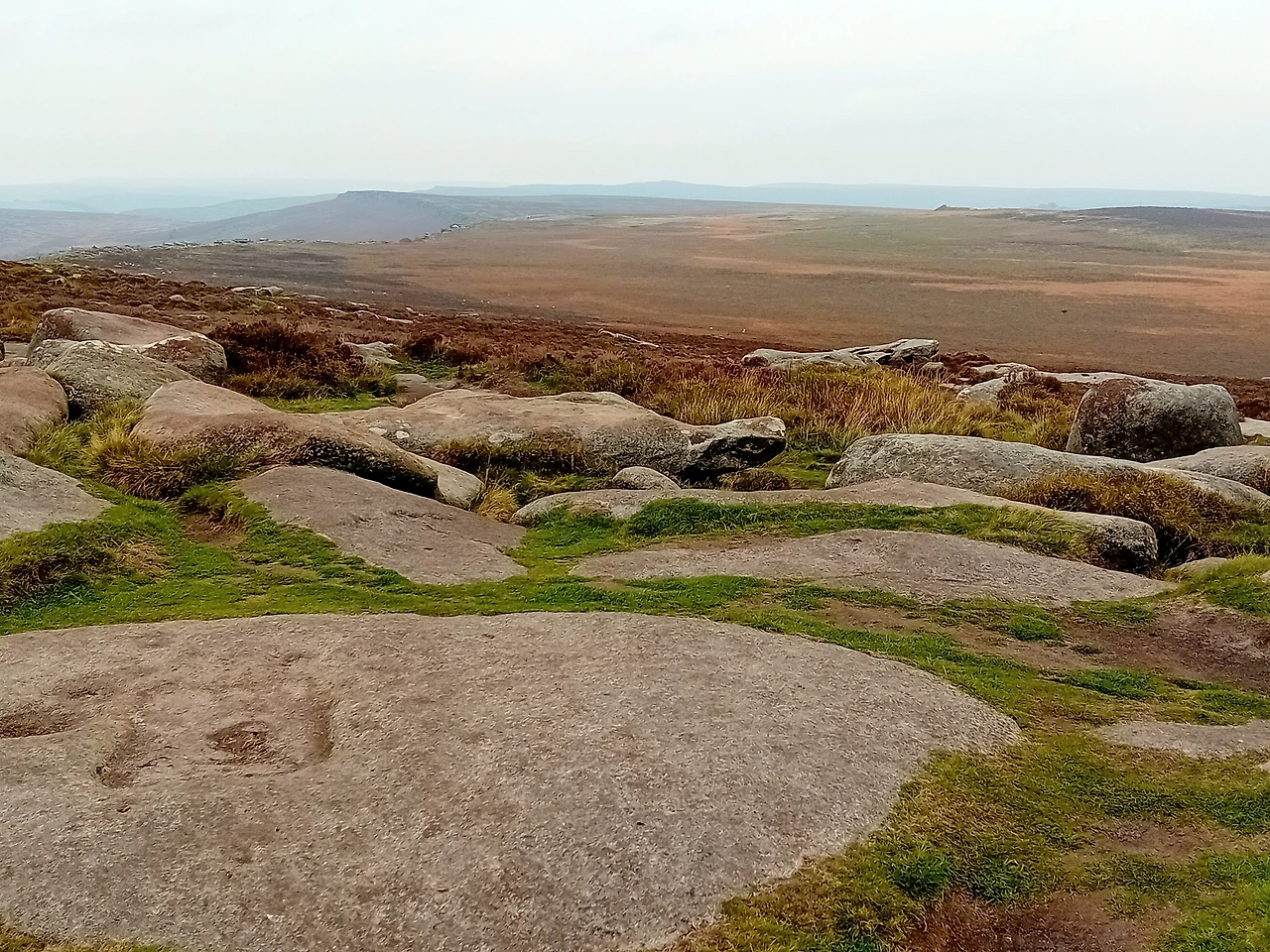 드넓은 초원, 펼쳐진 광야, 굽이굽이 작은 동산들이 겹쳐져 있는 탁 트인 대자연은 날씨가 조금 흐려도 여전히 아름답다. 날씨가 좋았으면 물론 훨씬 더 아름다웠을 게다. 10년 전에는 뭔가 강과 호수가 멀리 보이는 높은 지대 초원을 걸었었는데 이번 코스는 들판의 바위 동산이었다.