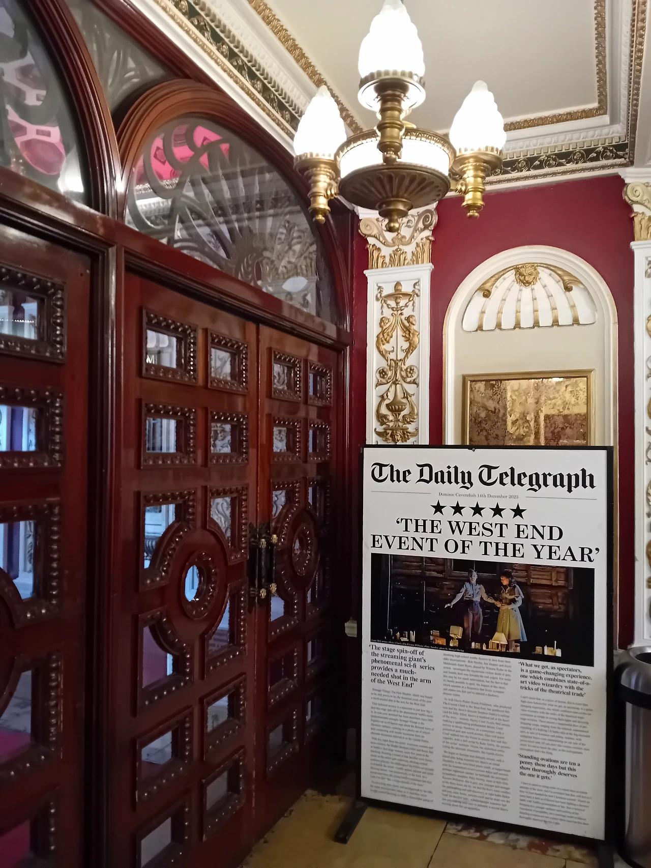 복도를 걸으면서 어, 여기 언제 왔었던 것 같은데, 하는 느낌을 받아서 이전 공연들을 찾아봤는데 본 게 없는 것으로 보아 처음 간 거였다. 아마도 런던의 극장들이 내부 인테리어가 좀 다들 비슷비슷한 그런 게 있는갑다.