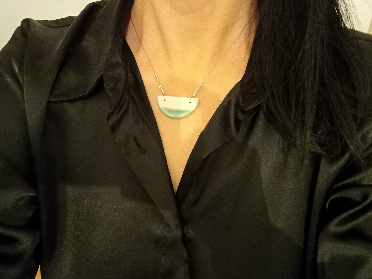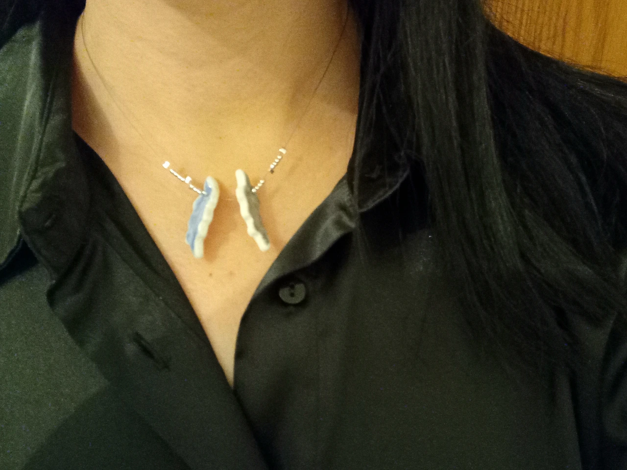 반달 목걸이를 추가로 더 만들었는데 얘는 테이블에 그냥 뒀을 때가 제일 예쁜 거 같다. 막상 목에 거니까 좀 이상하고 어색한 느낌이 있다. 다음 주 수업에 다시 가져가서 길이를 아예 길게 해 보고 금속 비즈가 아니라 하얀 자기 비즈를 같이 꿰고 줄을 두꺼운 걸로 바꾸거나 여러 줄을 같이 엮어봐야겠다.