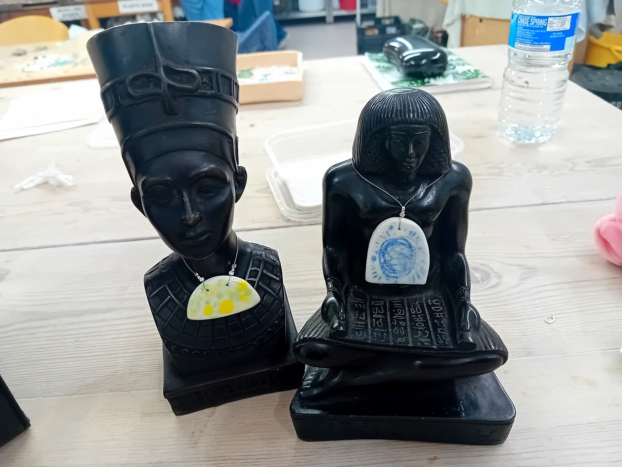 이집트 파라오와 여왕 장식품들은 너무 시꺼매서 좀 무서웠는데 노랑연두와 파랑 목걸이를 걸어주니까 좀 덜 무서워졌다.