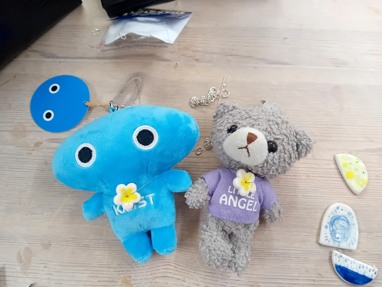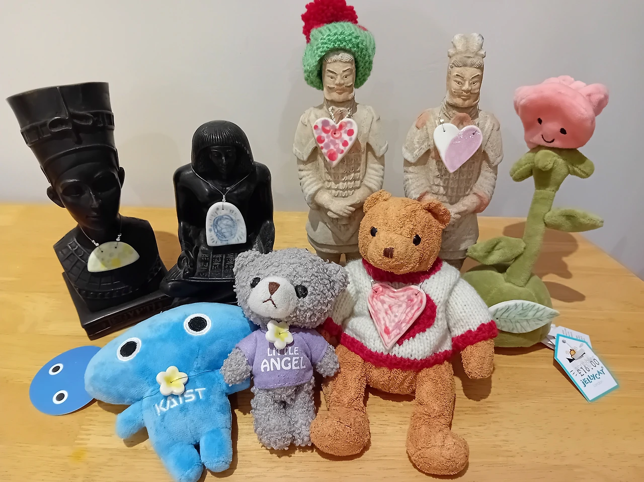 오늘 자기 주얼리 수업의 수혜자들을 한 자리에 모아봤다. 다 같이 모아놓고 보니 역시나 넙죽이와 회색 곰돌이의 깜찍함이 가장 돋보인다.