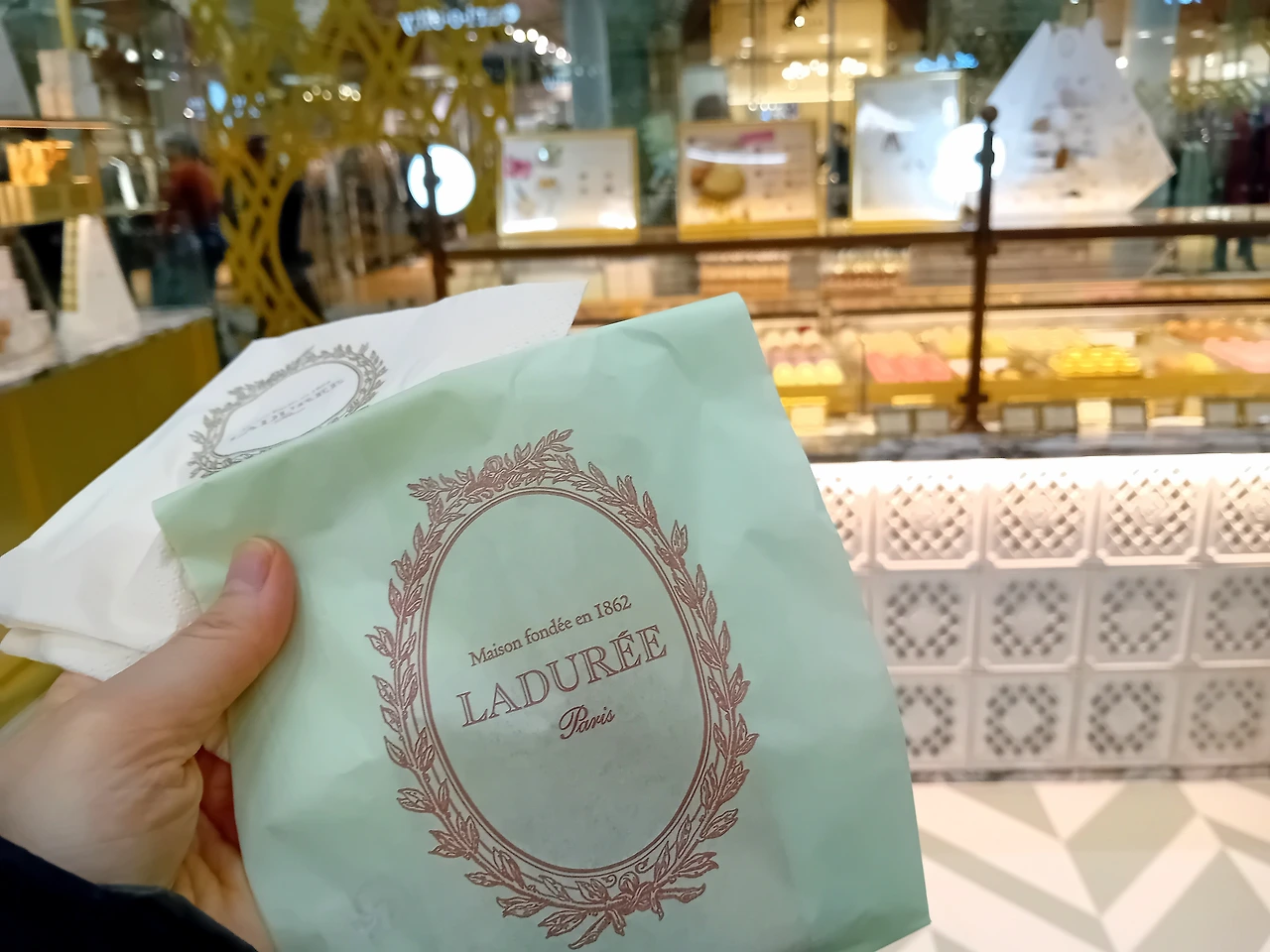 집에 돌아가는 길에 런던 기차역에서 라두레 Ladurée (파리 마카롱 맛집 브랜드)에 들러 마카롱 세 개를 샀다. 바닐라, 피스타치오, 커피 맛. 집에 가는 길에 기차 안에서 하나 먹고 다음 날 두 개 먹을 계획이었고, 하나 먹고서 '아, 뭐 그냥 아는 그 맛이지 뭐. 대단한 건 없지' 싶었지만 하나 먹기 시작하니까 멈추지 못하고 다 먹어버렸다. 다음엔 두 개만 사야겠다.