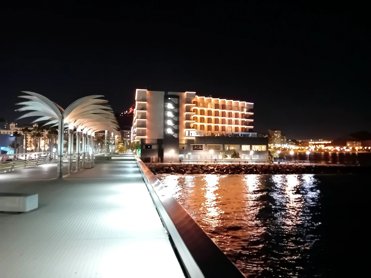일찍 문을 닫아버려서 안에 구경을 못한 시장 건물은 무슨 시장 건물이 이렇게 으리으리한가 싶었고, 야자수와 조명 때문에 더 멋져 보였다. 부둣가도 좀 걸어봤는데 거긴 대단한 건 없었다.