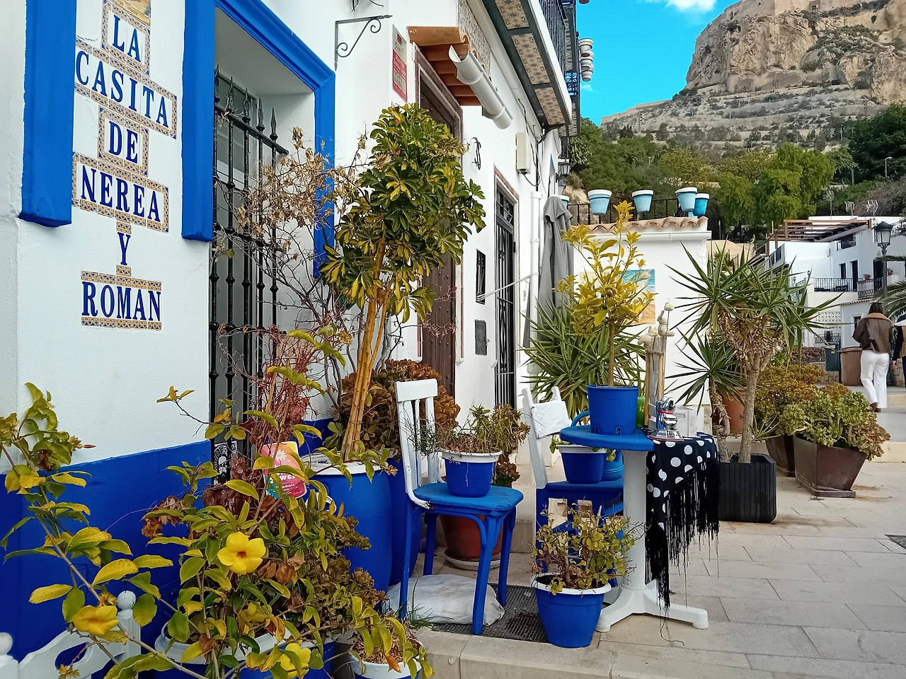 저 성은 어떻게 올라가는 거지, 하고 걸어가는 길에 보이는 집들은 전반적으로 벽들이 다 하얀 와중에 빨간 화분들도 있고, 파란색 포인트를 준 집도 있고, 뭔가 집집마다 한 가지 색만 쓰라고 누가 시킨 것처럼 색깔을 맞춰 썼다.