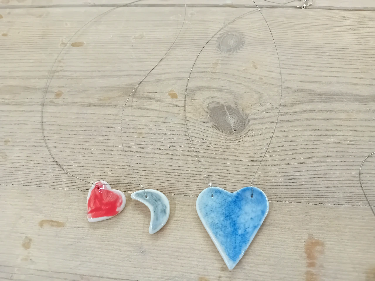큰 파란 하트 목걸이랑 작은 빨강 하트랑 검은 초승달을 엮은 목걸이도 만들었다.