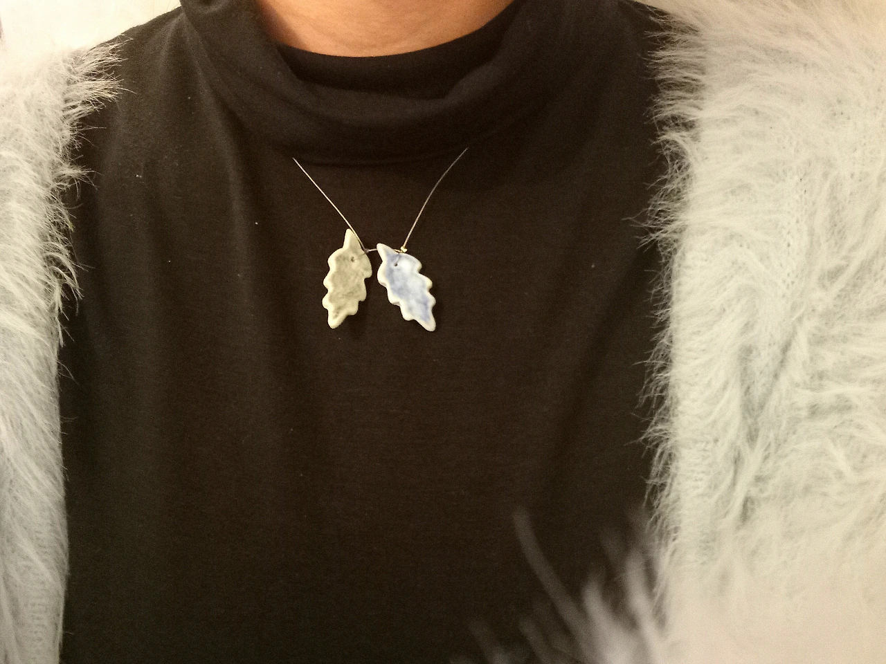 집에 와서 목에 다 걸어보니까 좀 괜찮은 것 같은 것들은 나뭇잎 두 개 목걸이랑 중간 사이즈 비즈 목걸이다.