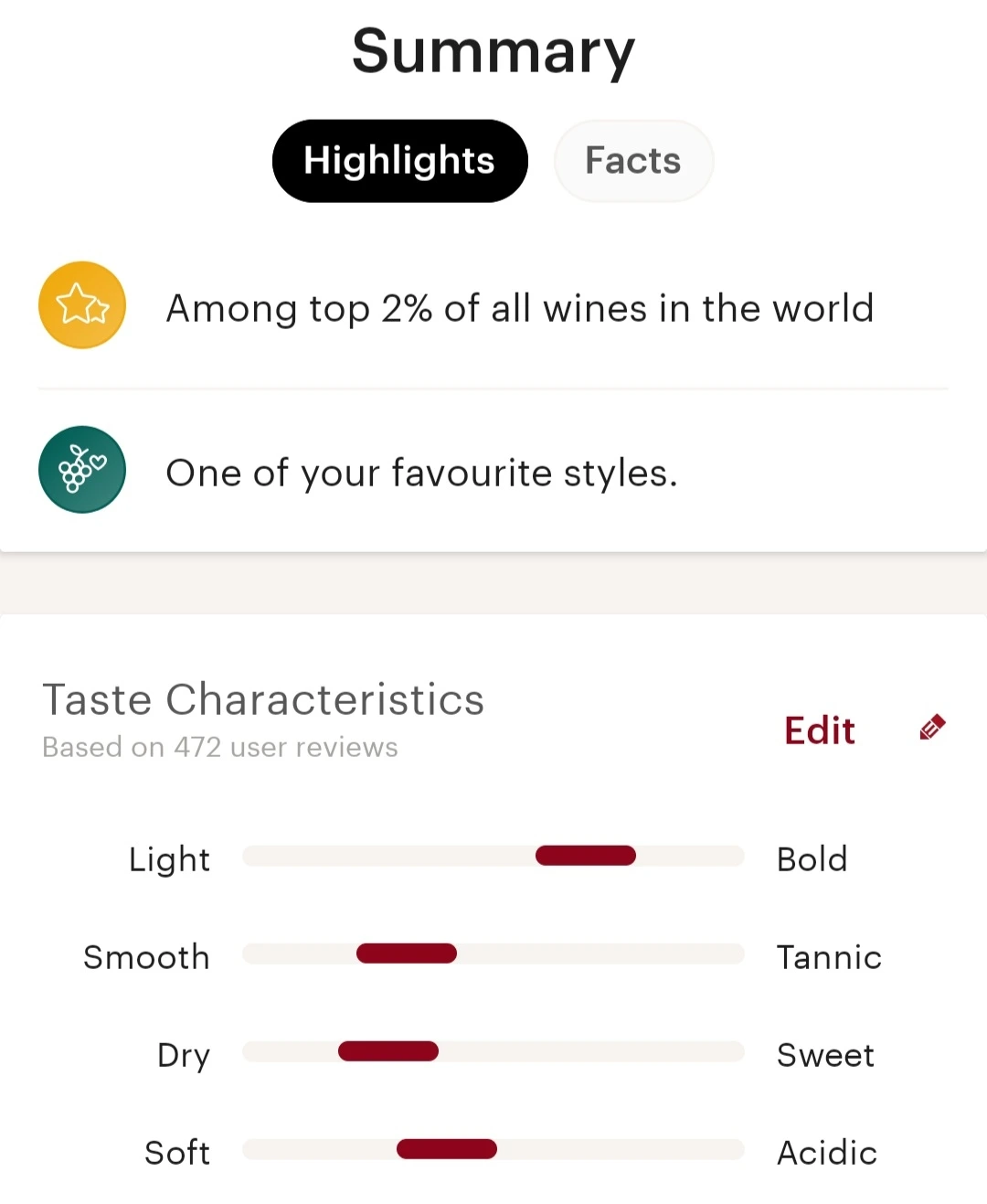 전 세계 상위 2%의 훌륭한 와인이고 지금껏 내가 비비노에 저장해 온 데이터에 의하면 내가 좋아하는 스타일이다. 하지만 우와, 맛있다! 는 아니었다. 뭐 나쁘지 않군, 마실만하군, 에 가까웠다. 부드럽지만 가볍진 않고 달지 않고 드라이하고 신맛도 별로 없다. 적당한 으른의 맛인데 조금 더 스모키 했으면 내 입맛에는 더 잘 맞았을 것 같기도 하다.