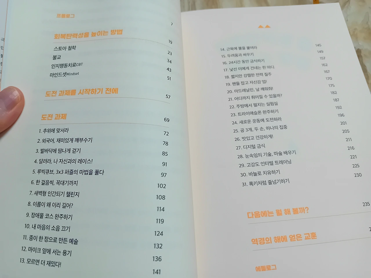 대략 처음 50페이지 정도의 도입부가 아주 훌륭했고, 그 뒤로는 31개의 도전 과제들이 나오면서 본인이 어떻게 도전을 하고 이루었는가 자랑질인데, 그 나머지가 그냥 그랬다. 각자 본인이 필요하고, 하고 싶은 도전을 하면서 살면 되는 듯하다.