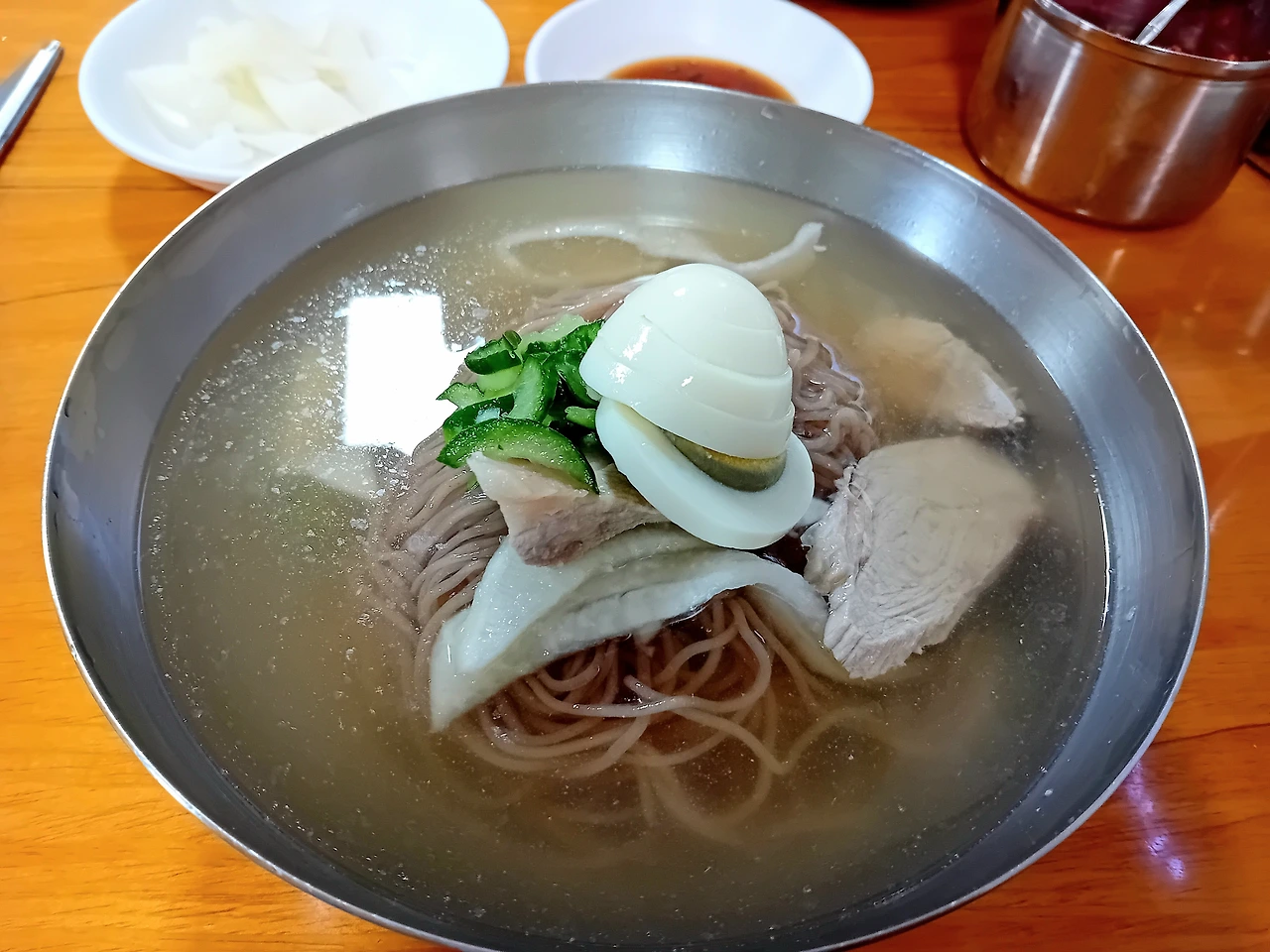 초계 들기름 메밀국수 처음 먹어봤는데 슴슴하니 맛있었지만 역시 평양냉면이 최고인 거 같다.