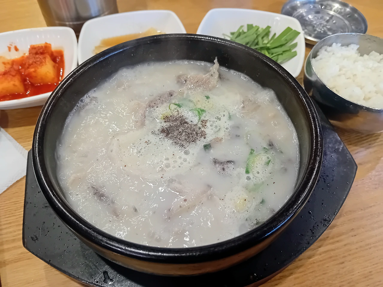 피부과 옆에 있는 삼삼뼈국은 두 번이나 갔다. 얼큰한 것보다 하얀 국물이 더 맛있다.