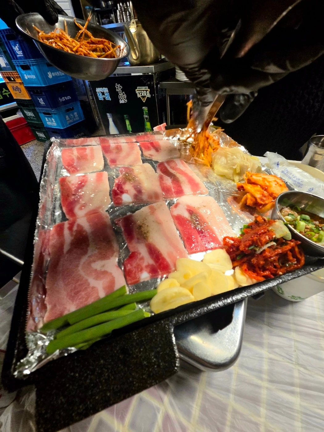 삼겹살에 청국장도 아주 맛있었다. 더 젊을 때는 씹히는 맛이 좋은 두꺼운 삼겹살이 더 좋았는데, 나이가 좀 드니 씹기도 더 쉽고 소화도 더 잘 되는 얇은 냉동 대패 삼겹살이 더 좋다.