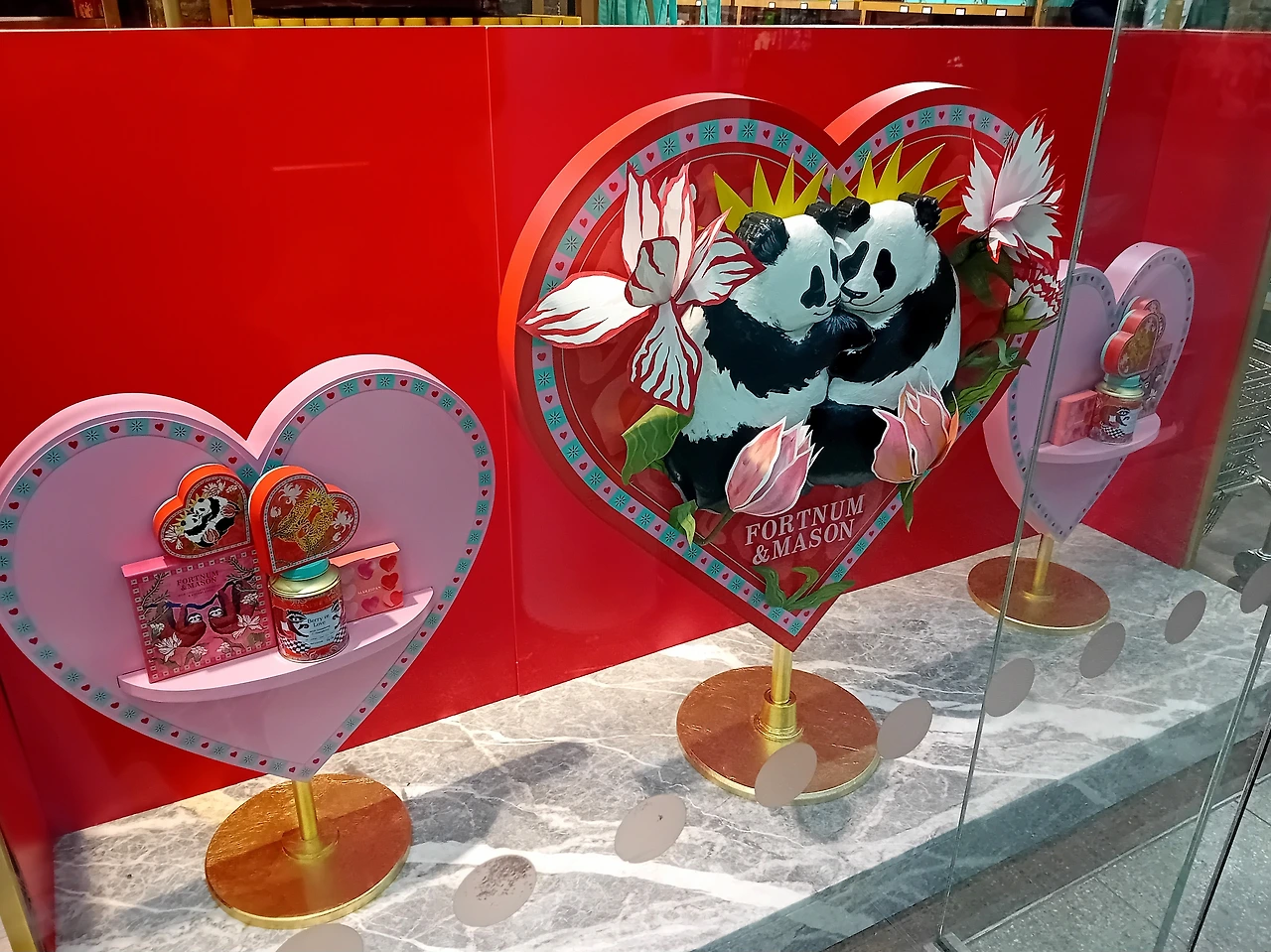 다시 지하철을 타고 기차역 London St Pancras으로 돌아갔다. 포트넘 앤 메이슨 Fortnum & Mason을 잠시 구경했다. 발렌타인데이라고 특별한 홍보를 하는 거 같은데 이 촌스러운 판다들은 뭐지 싶었다. 이것은 부자 중국인들을 노린 마케팅인가.