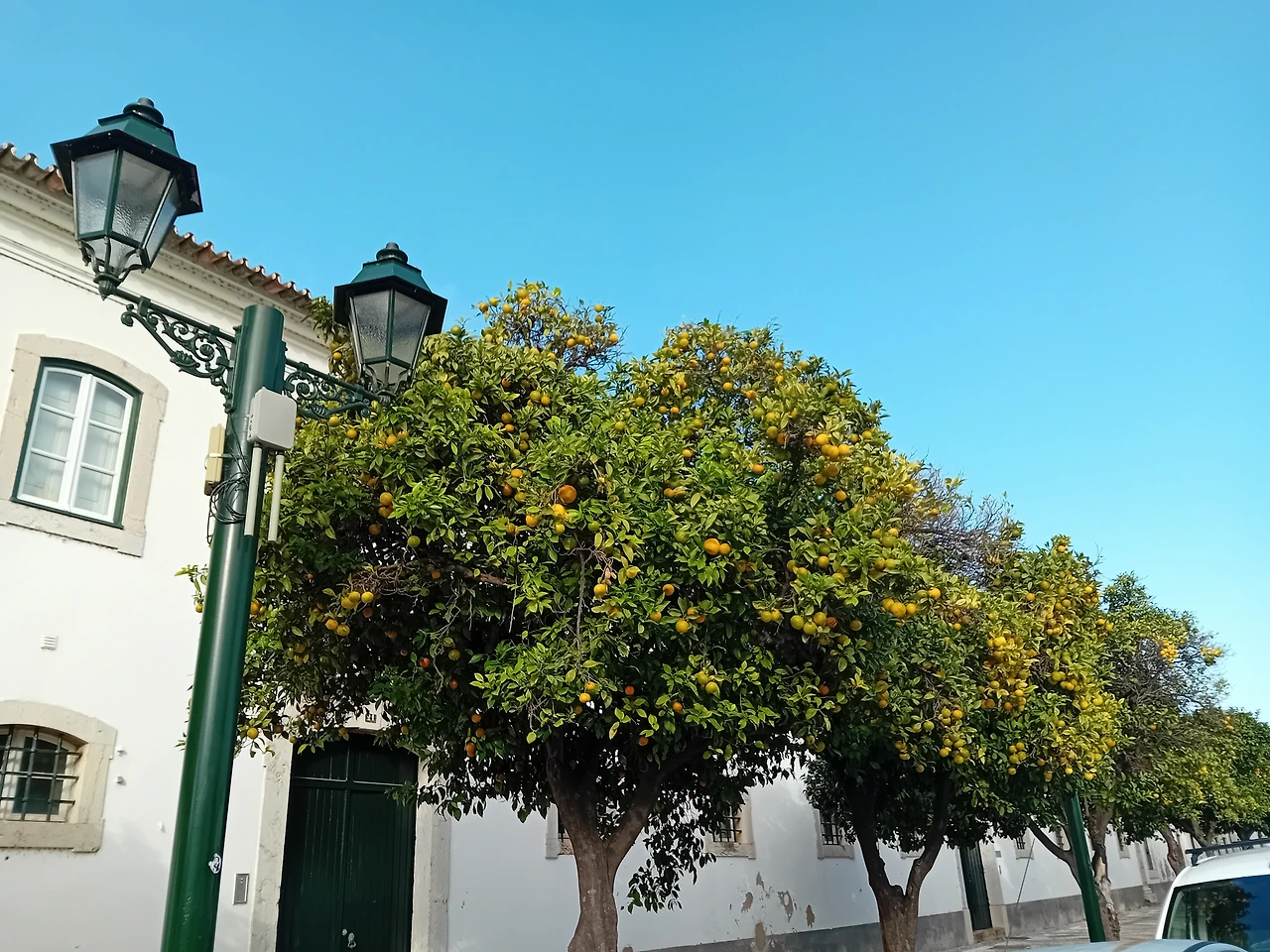 가로수는 오렌지 혹은 귤나무인 것 같다.