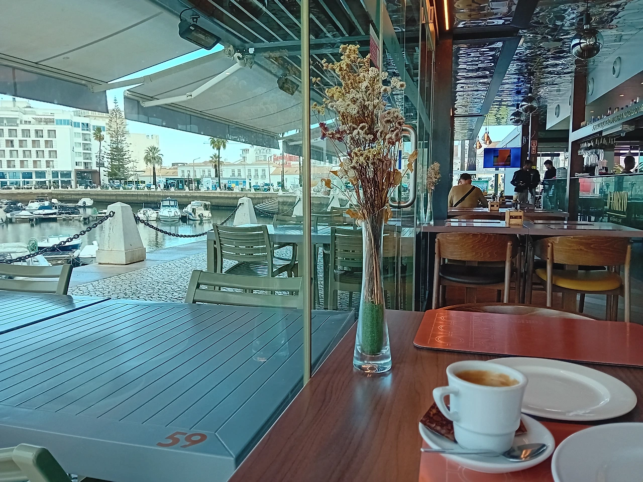 역시 해안가 도시라 해안가에 오니 드디어 열린 식당이 있다. 들어갔더니 직원이 좋은 창가 자리에 앉혀줬다. 메뉴를 보기 전에 아메리카노부터 시켜서 마셨다. 아침엔 역시 카페인이 들어가야 한다.