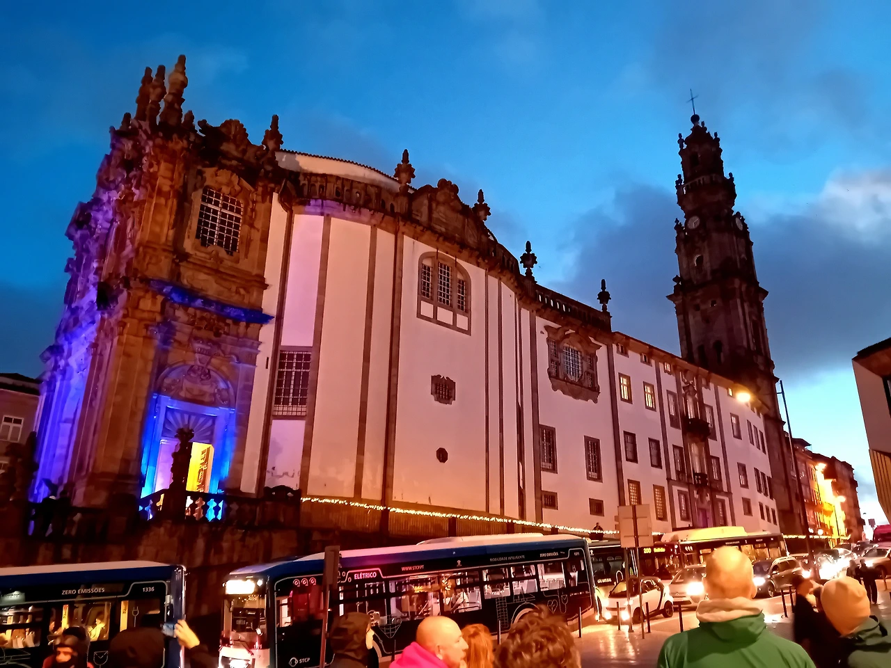 시내 랜드마크 교회 Clérigos Church도 해가 지고 보니 또 다른 느낌이다. 조명이 들어온 느낌이 레이저쇼를 시작한 것 같았다. 동네가 낮과 밤으로 다른 멋이 있다.