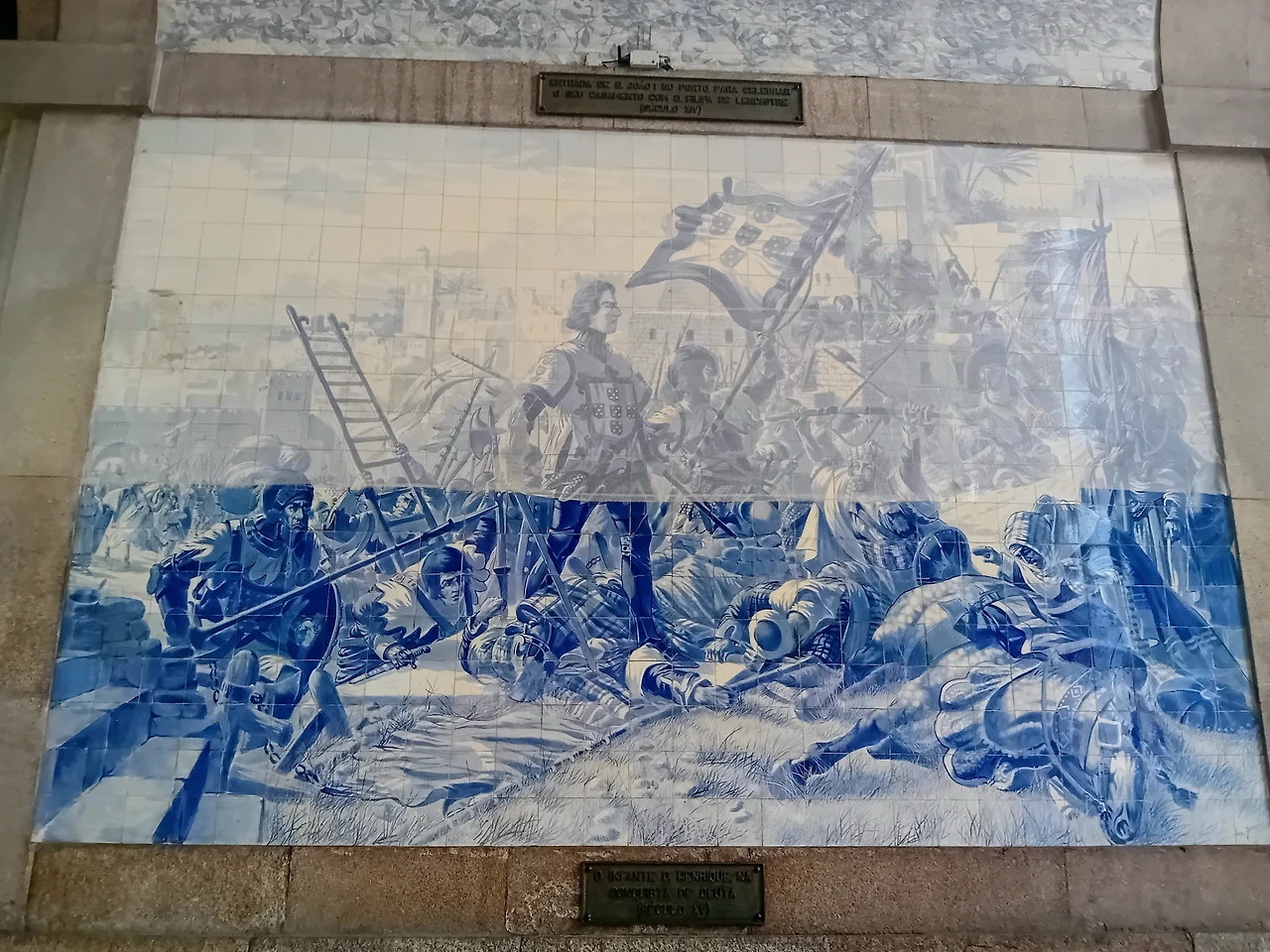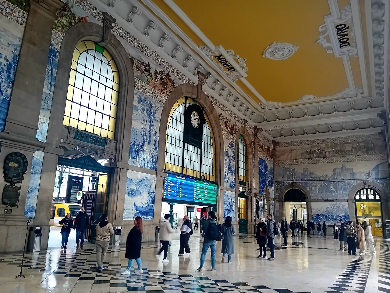 여기 상 벤투 São Bento 기차역이 아줄레주 azulejo(포르투갈과 스페인에서 널리 사용되는 채색 장식 타일)가 유명하다 그래서 보러 갔다. 건물 바깥쪽이 공사 중이라 좀 정신이 없었다.