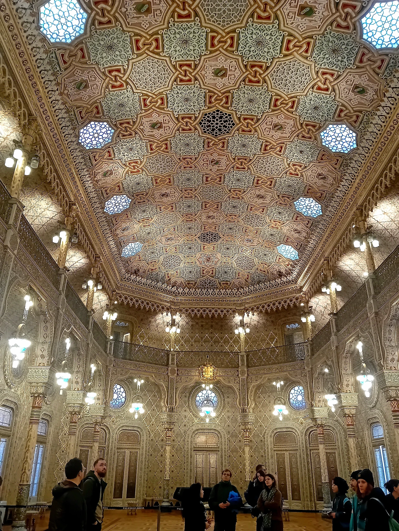 여기저기 다양한 공간들이 다 멋졌지만 제일 인상적이었던 곳은 아랍의 방이었다. 이 건물에서 가장 유명한 공간이라 한다. 금박의 아라베스크 Arabesque 장식 (끝없이 이어지는 식물 덩굴, 잎, 꽃 형태의 반복 패턴)이 아주 아름답다. 이슬람 궁전 장식을 모방했다 한다.