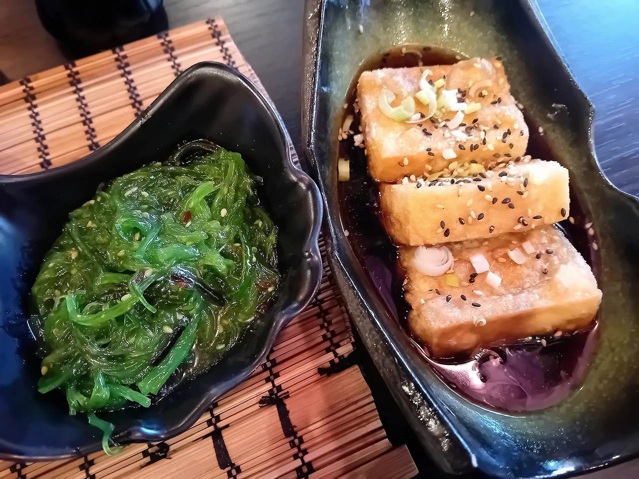 아게다시 두부랑 히야시 와카메(해조류 샐러드)를 스타터로 시켰다. 익숙한 아는 맛이라 좋았다.