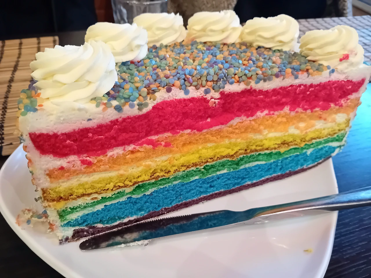 외부에서 사 온 케이크를 먹을 수 있게 해 준 건 정말 고마웠다. The Cake Solution - Wigston이라는 케잌 맛집에서 산 무지개 케잌은 별로 달지 않고 아주 부드럽고 촉촉하고 맛있었다. 영국에, 그것도 우리 동네에 이런 케잌집이 있는 줄 처음 알았다. 시내에 있으면 진짜 자주 갔을 텐데 너무 외곽에 있어서 안타깝다.