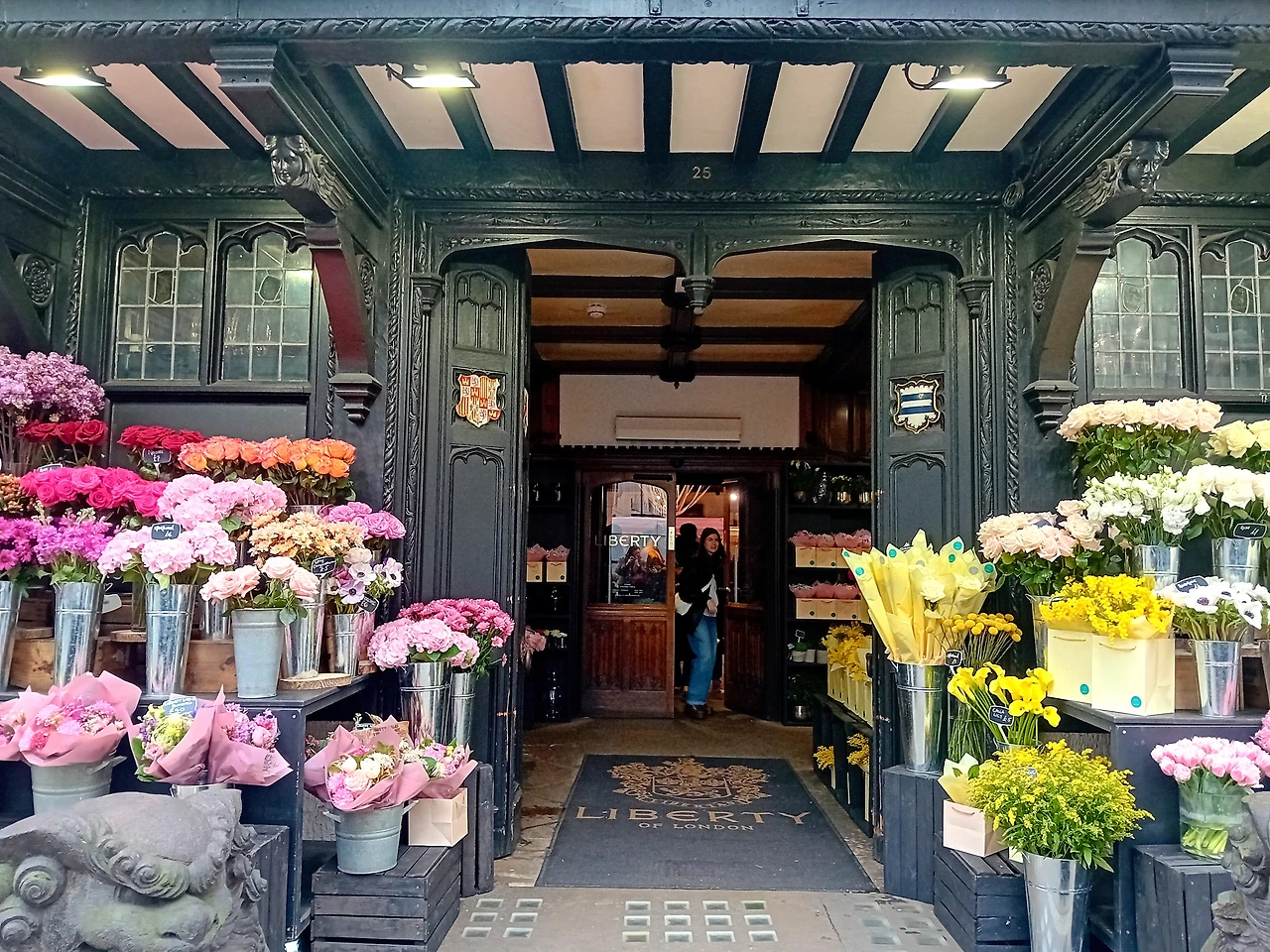 전혀 계획에 없었지만 할머니 말을 듣고 귀가 팔랑거려서 런던에 도착하자마자 리버티 백화점에 갔다. 이 백화점으로 말할 것 같으면 런던에서 가장 독특한 건물 중 하나로 튜더 리바이벌 Tudor Revival 스타일의 목조 건축으로 유명하다 한다. 확실히 이렇게 생긴 백화점 영국에서 처음 봤다.
