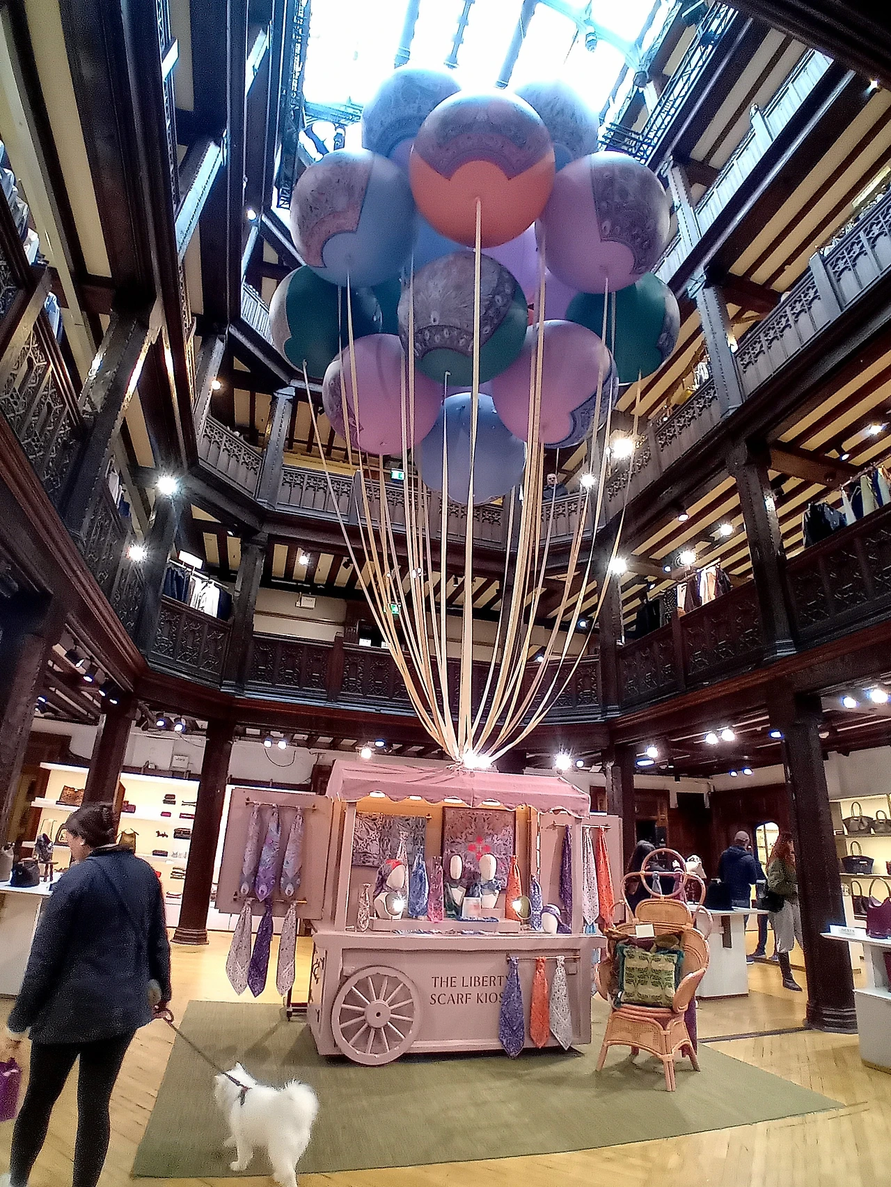 건물 안에 들어가니까 들어가자마자 작은 공터에 커다란 풍선들이 달린 스카프 팝업샵이 있다. 아주 느낌 있고 좋다. 애완견이랑 같이 쇼핑하는 사람들이 제법 보였다.