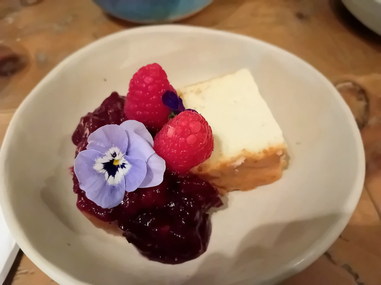 디저트로는 바스크 치즈케이크 homebaked basque cheesecake with vanilla and figs (£7.90 = 만 3천 5백 원)를 시켰다. 내가 아는 그 바스크 치즈케이크 맛은 아니었다. 별로 크리미하지 않고 오히려 일본식의 좀 덜 달고 가벼운 스펀지 느낌도 있었다. 이런 게 아르헨티나 스타일인가. 바닐라와 무화과가 있다고 메뉴에 나오는데 아마도 치즈케이크를 만들 때 바닐라 추출액을 넣고, 같이 나온 잼이 무화과 잼이어야 하는 게 아니었나 싶다. 실제로 잼맛은 그냥 딸기잼인 거 같기도 했다. 식용 팬지/비올라 Viola가 올라가 있는 것은 예뻐서 좋았다. 뭔가 전반적으로 맛이 없는 건 아니었는데 예상한 아는 맛이 아니어서 살짝 실망했달까.