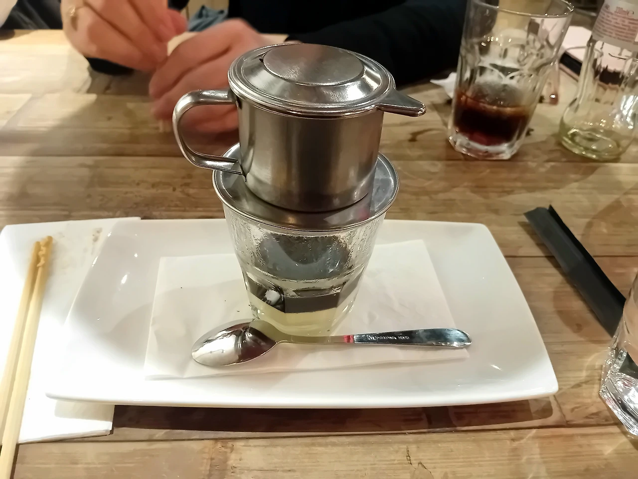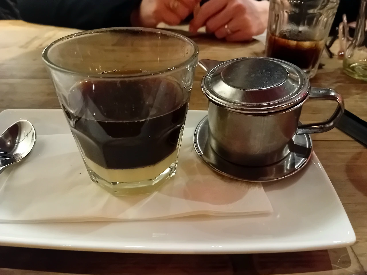 친구 한 명이 밥 먹고서 베트남식 드립커피를 시키길래 나도 시켜봤다. 밑에 연유를 깔아서 섞어 마시니까 아주 달달하니 디저트 커피로 딱이었다.