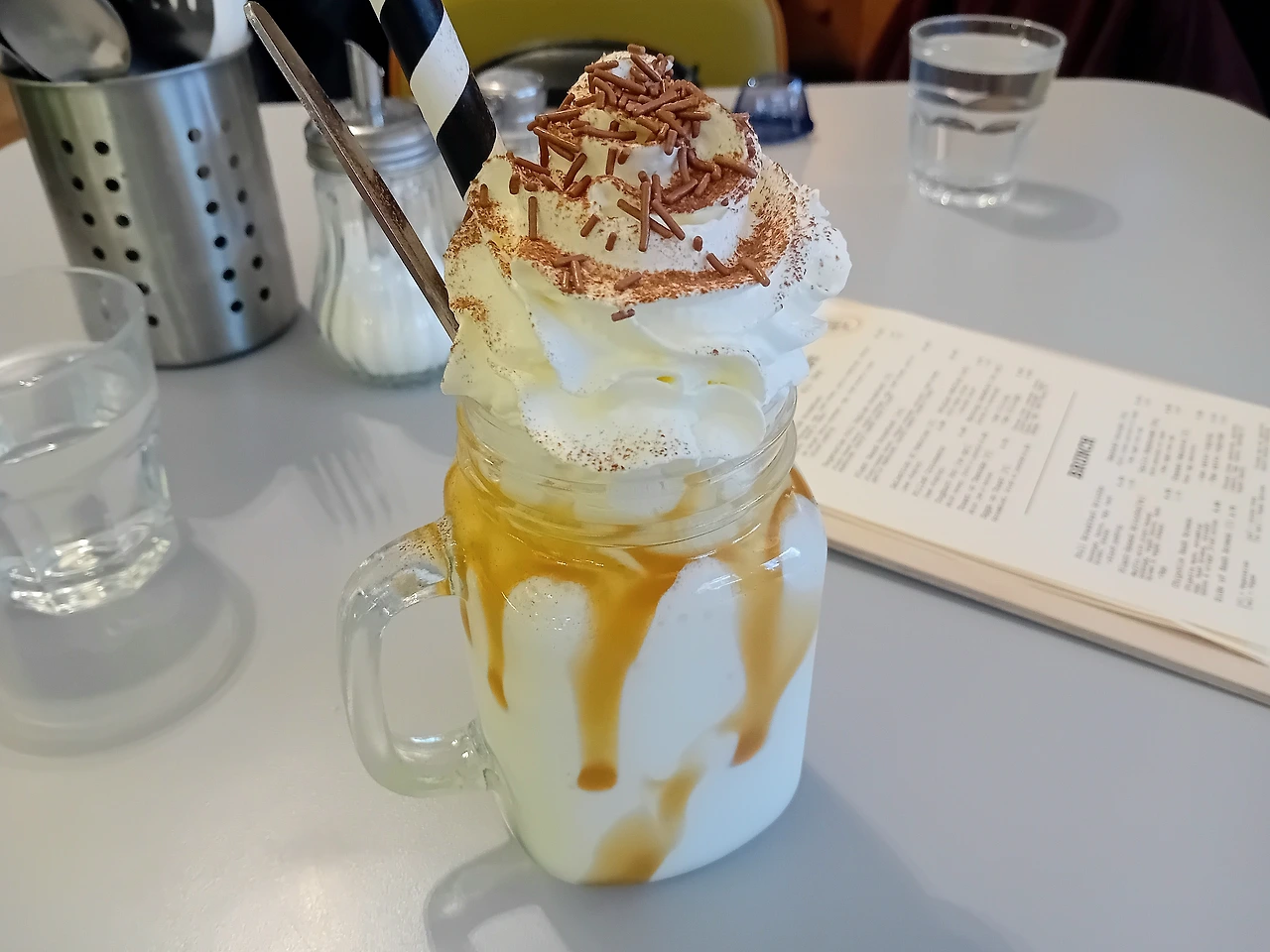 3월 7일 토요일에는 오랜만에 노팅햄에 놀러 가서 그리스 친구를 만났다. 카페 소바 Cafe Sobar (https://maps.app.goo.gl/F85GjzcbHuH67TadA?g_st=ac)에 갔다. 음료로 벌집 밀크셰이크를 시켰다. 엄청 달 것처럼 생겼지만 적당히 기분 좋은 단맛이었다.