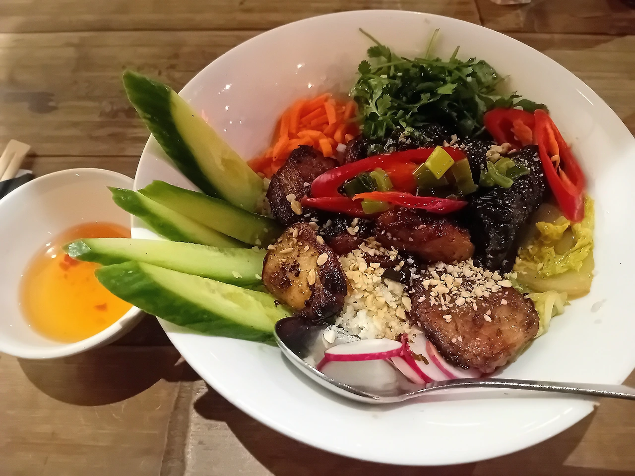 항상 포에 가면 쌀국수만 먹었는데 다들 밥을 시키길래 나도 롸이스볼을 시켜봤다. 밥 대신에 콜리플라워를 밥처럼 만든 걸 시킬 수 있었다. 식감은 얼추 밥 같은데 아주 건강한 맛이라 좋았다. 다음에도 또 건강한 음식이 먹고 싶을 때는 롸이스볼을 시켜야겠다.