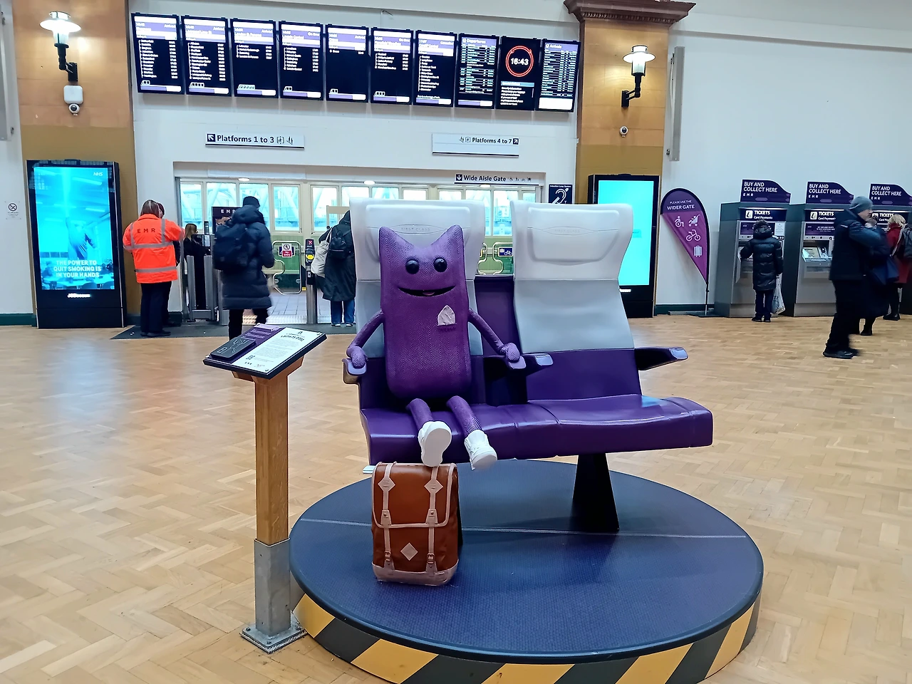 돌아가는 기차역에서 마일즈 Miles (EMR - East Midlands Railway - 캐릭터)가 앉아있는 새로운 조형물을 발견했다. 가끔 이 캐릭터 인형을 사고 싶다는 생각이 든다.