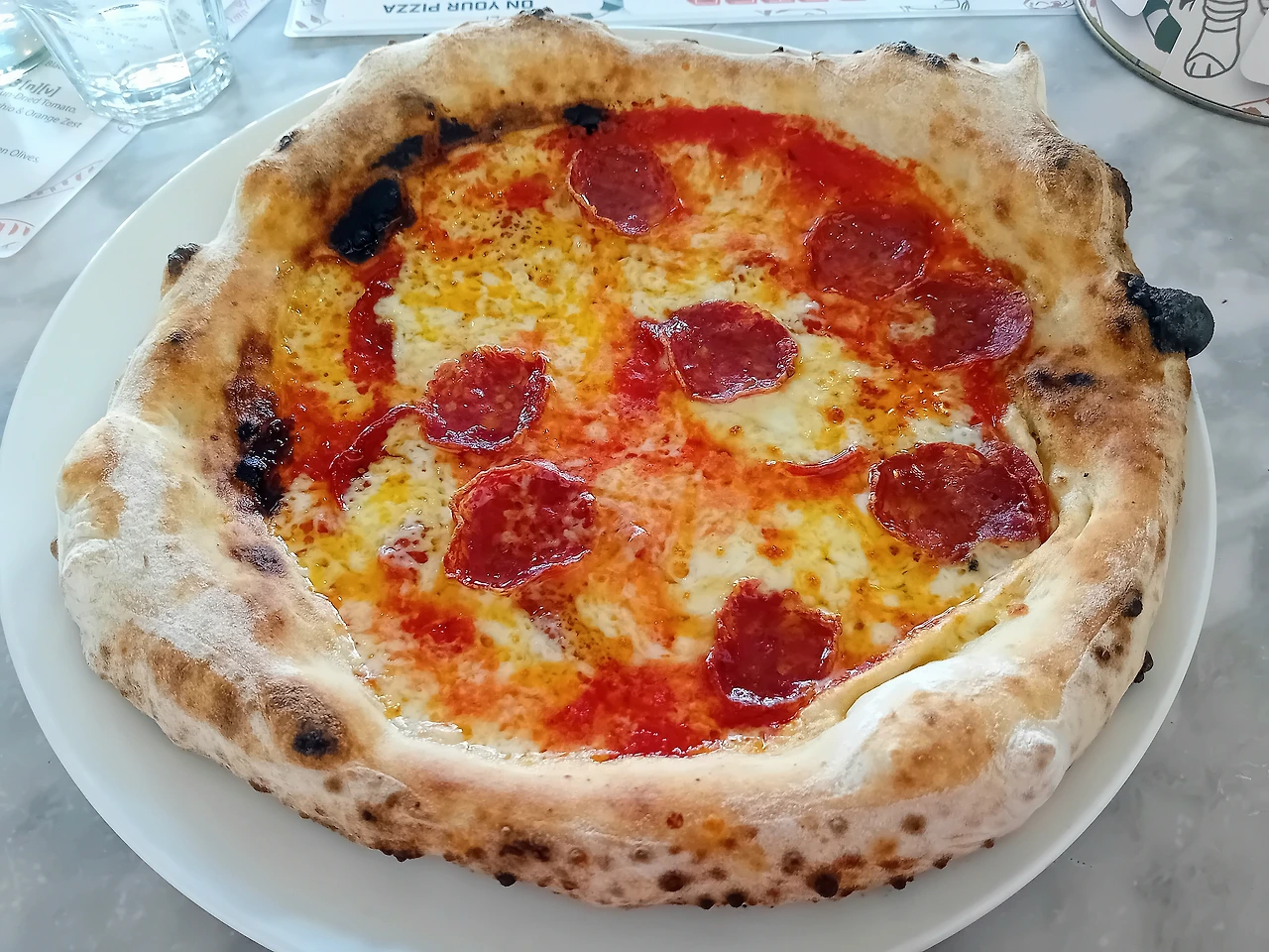 보기에는 페퍼로니 피자처럼 생겼다. 하지만 저 살라미가 그냥 살라미가 아니라 야생 멧돼지 살라미다. 매운맛과 꿀맛도 났다. 야생 멧돼지라 그런지 확실히 뭔가 독특한 풍미가 있었다. 아주 적절한 단짠의 조화가 훌륭했다. 저번에 가서는 반 먹고 반 싸서 가져갔는데 이번에는 한 판 다 먹었다.