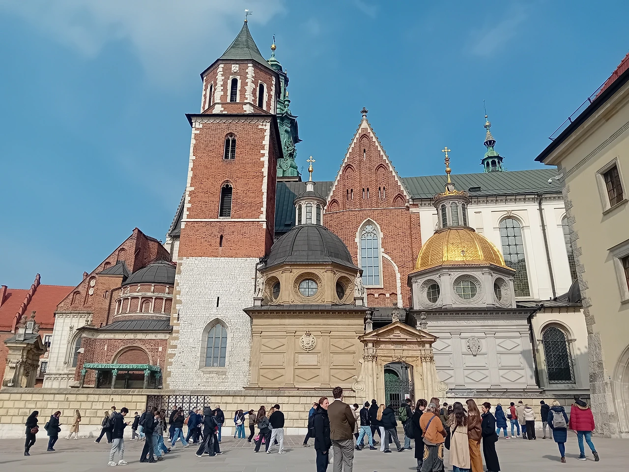 밖에서만 봤지만 성당이 아주 특이하고 아름다웠다. 이 성당은 폴란드 왕들의 대관식과 매장지 역할을 했던 국가적 성당이라 한다.