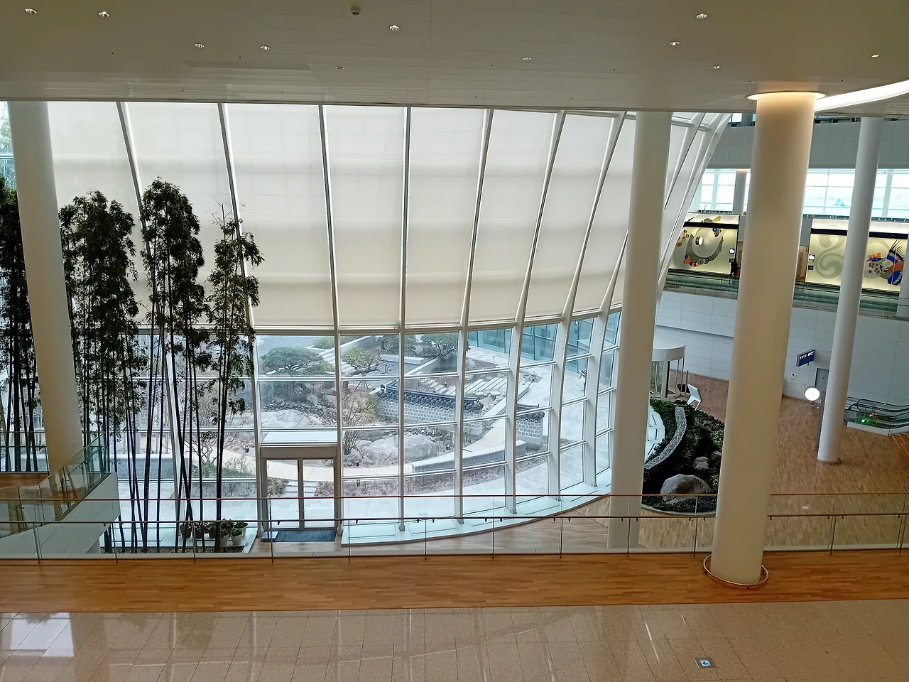 아시아나 항공이 2 터미널로 옮겨가면서 대한항공 라운지를 쓰게 되었다. 영국행 비행기 게이트와 가장 가까운 라운지는 프레스티지 라운지 가든 동편이었다. 대한항공과 아시아나가 라운지를 공유하니까 엄청 복잡하지 않을까 걱정했는데 사람이 하나도 없었다. 아시아나 영국행 비행기가 워낙 아침 일찍이라 이때 뜨는 비행기는 영국행 아시아나만 있는 게 아닌가 싶다. 앞으로도 내내 같은 시간 때에 비행기를 탈 테니 항상 라운지는 이렇게 한산할 것 같다.