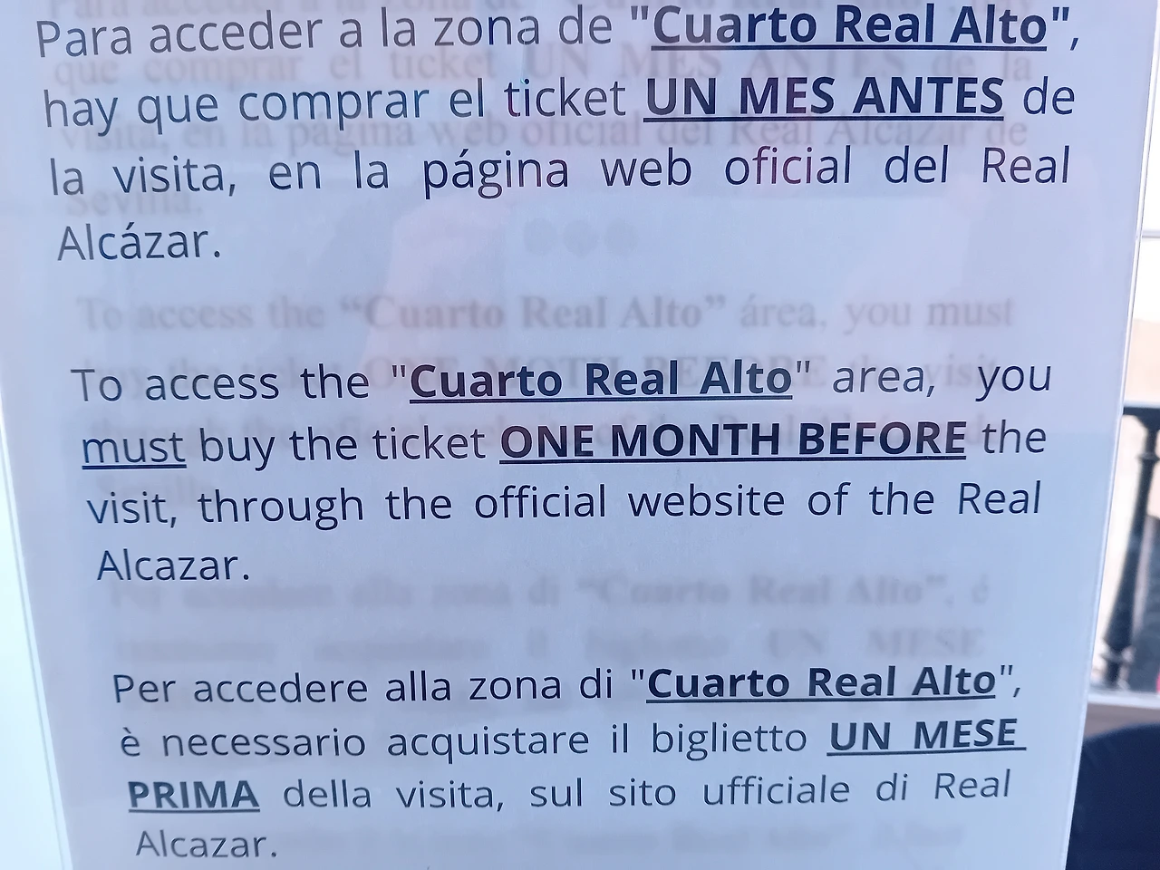 로열 알카자에 10시 반 입장을 했다. 유네스코가 지정한 세계유산 중의 하나라니 좀 기대가 된다. 그라나다에 다녀온 사람들은 알함브라 궁전이랑 비슷하다 하는데 나는 그라나다에 안 갔으므로 새로운 경험일 것이다. 입구는 뭐 그냥 그렇다.