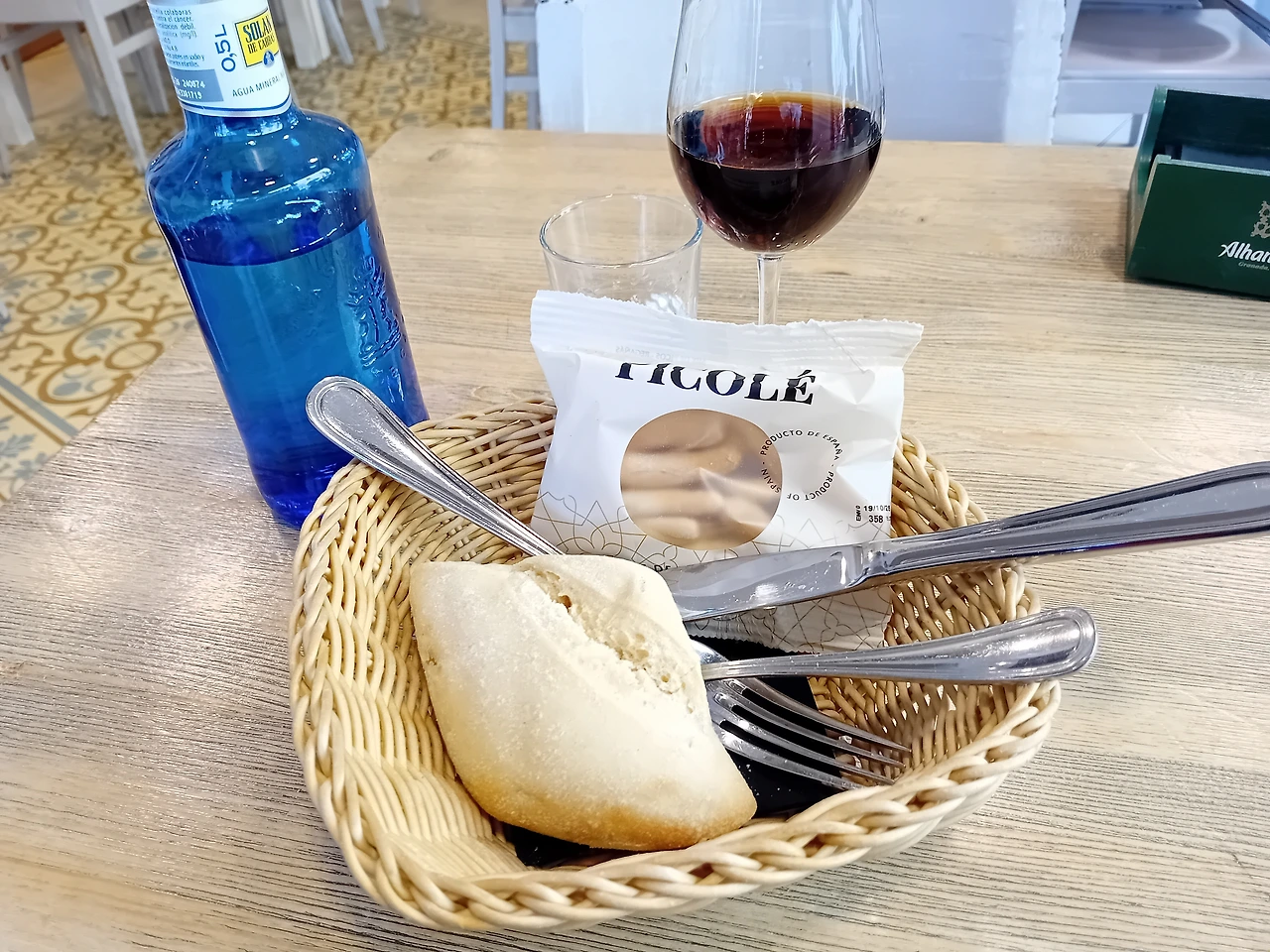 티켓팅해 놓고 식당을 찾았다. 맛집을 좋아하지만 그렇다고 크게 연연하지도 않아서 성당에서 제일 가까운 식당 중 평점이 나쁘지 않은 타파스 집에 대충 들어갔다. 오렌지 와인이 특산품이라길래 일단 한잔 시켜봤다. 당연히 오렌지 향이 난다. 특이한데 맛있는지는 잘 모르겠다. 따뜻한 빵과 과자가 서비스로 나온다. 빵은 따뜻하면 다 맛있지.