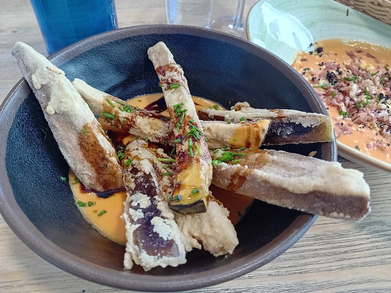 가지튀김도 맛있다 그래서 시켜봤다. 이건 좀 맛있다. 껍질이 좀 질긴 게 있긴 했다. 칼로 잘라 먹어야 한다.