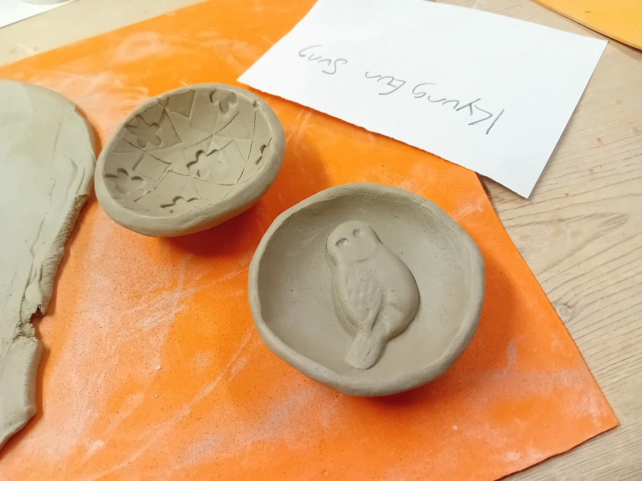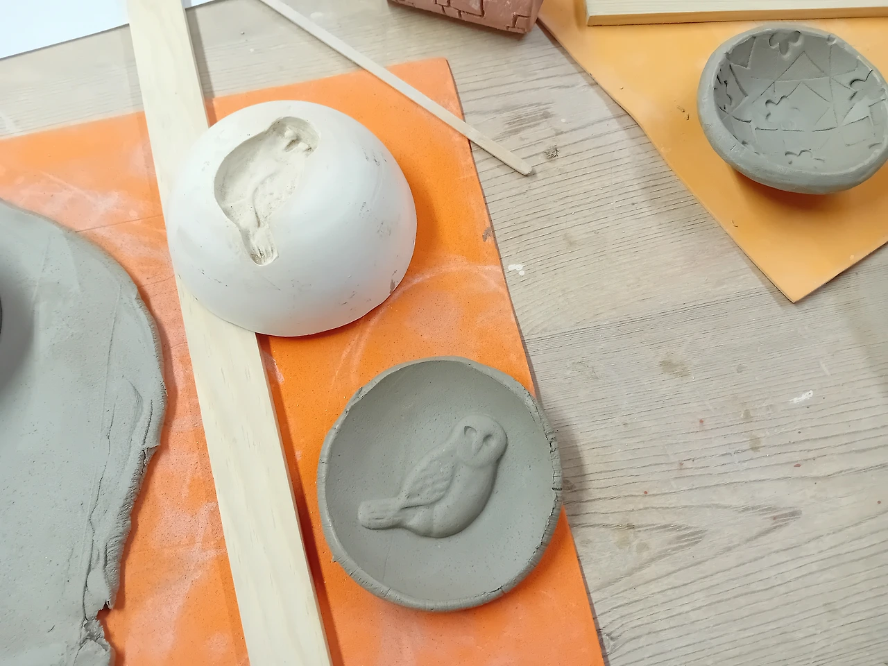새 모양 프레스 몰드로 찍어내서 새가 가운데 있는 두 번째 간장 종지도 만들었다.