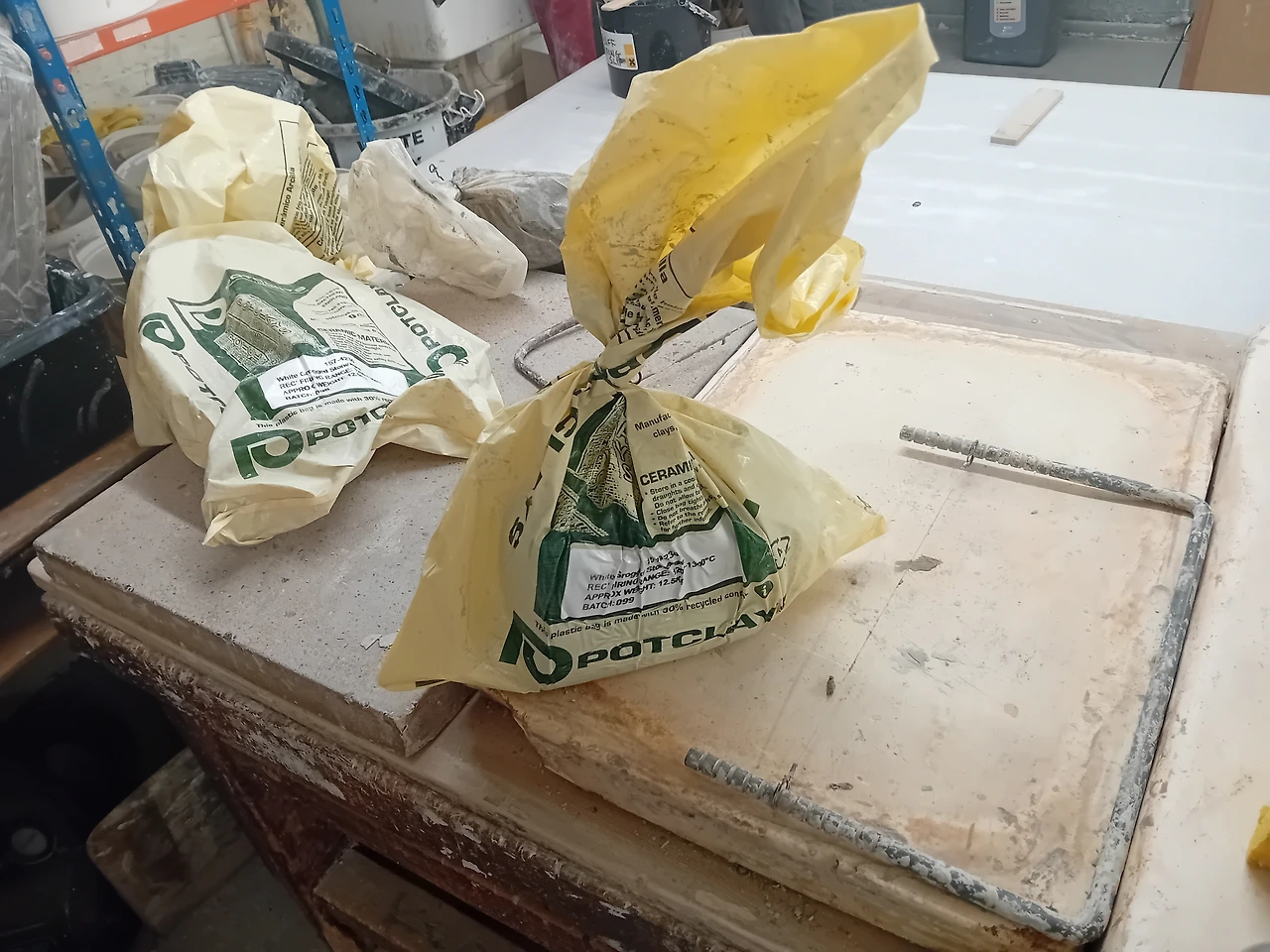 찰흙 종류가 여러 가지인데 하얀 찰흙 white clay을 주로 쓴단다. 찰흙이 하얀 건 아닌데 구우면 하얘져서 하얀 찰흙이라 부른다 한다. 와이어 커터 wire cutter로 하얀 찰흙 한주먹 덩어리를 잘랐다.