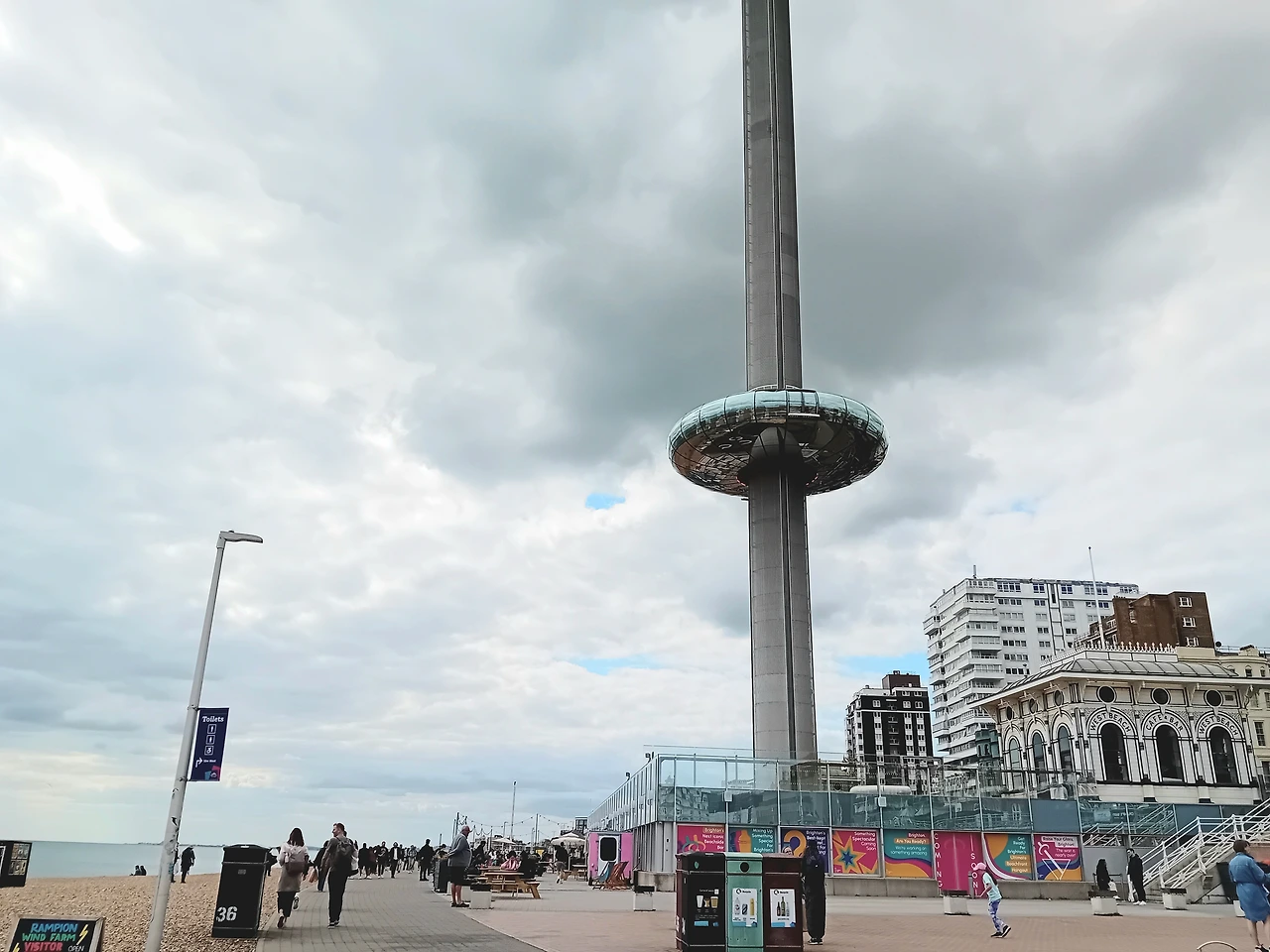 뒤집어진 집 옆에는 움직이는 전망대 Brighton i360가 있다. 런던 아이 London Eye (런던에 있는 랜드마크인 움직이는 전망대)가 꾸물꾸물 돌아가는 것처럼 얘도 꾸물꾸물 올라간다 했더니 역시나 같은 설계자들이 만들었다. 비싼 돈 주고 런던 아이 갔을 때 실망이 컸던 것을 기억해 굳이 타진 않았다.