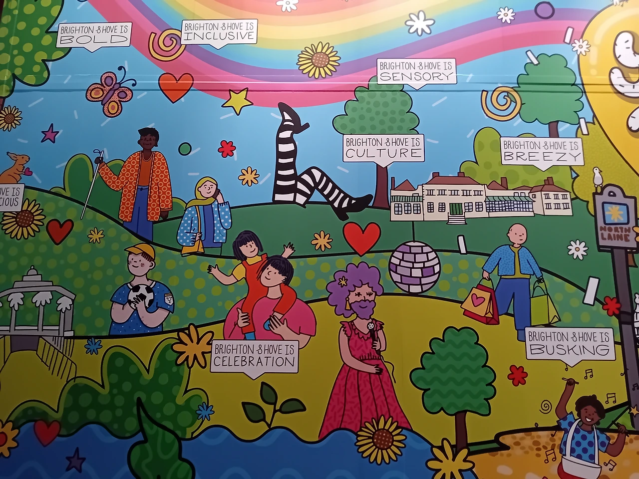 복도의 벽면 한 면에는 무지개색으로 브라이튼의 다양성을 표현한 벽화도 있다.
