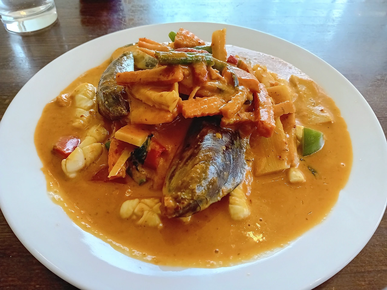 캐리어를 끌고 기차역으로 가는 길에 보인 태국 식당에 들어가서 저녁을 먹었다. 코코넛 밀크에 카레 넣고 각종 해산물들과 야채를 요리한 거였는데 딱히 내 취향은 아니었다.