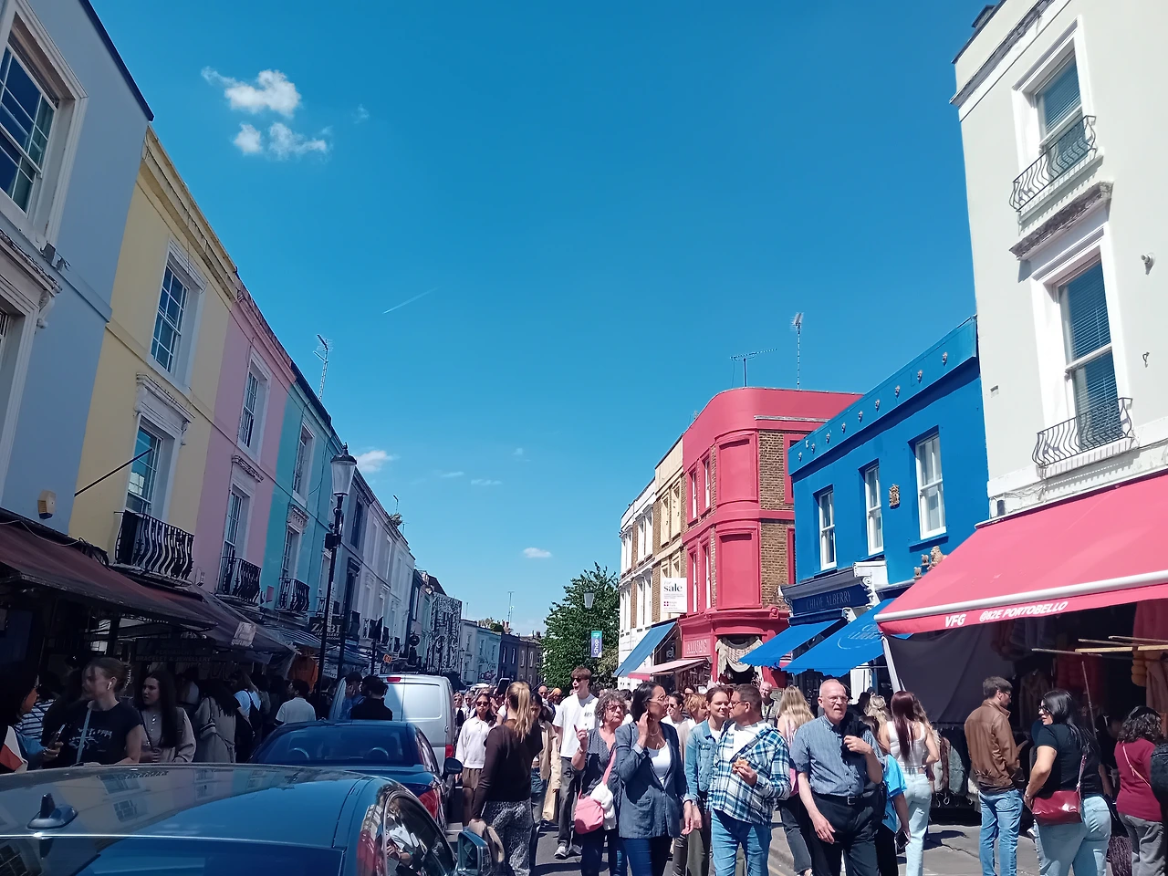 친구랑 만나기로 한 곳은 노팅힐 Notting Hill의 포토벨로 거리 시장 Portobello Road Market이다. 노팅힐은 영화로도 굉장히 유명한데, 나는 영국 살면서 런던 방문을 셀 수 없이 많이 하고서도 여기는 이번에 처음 와봤다. 건물들이 알록달록해서 예쁘다.