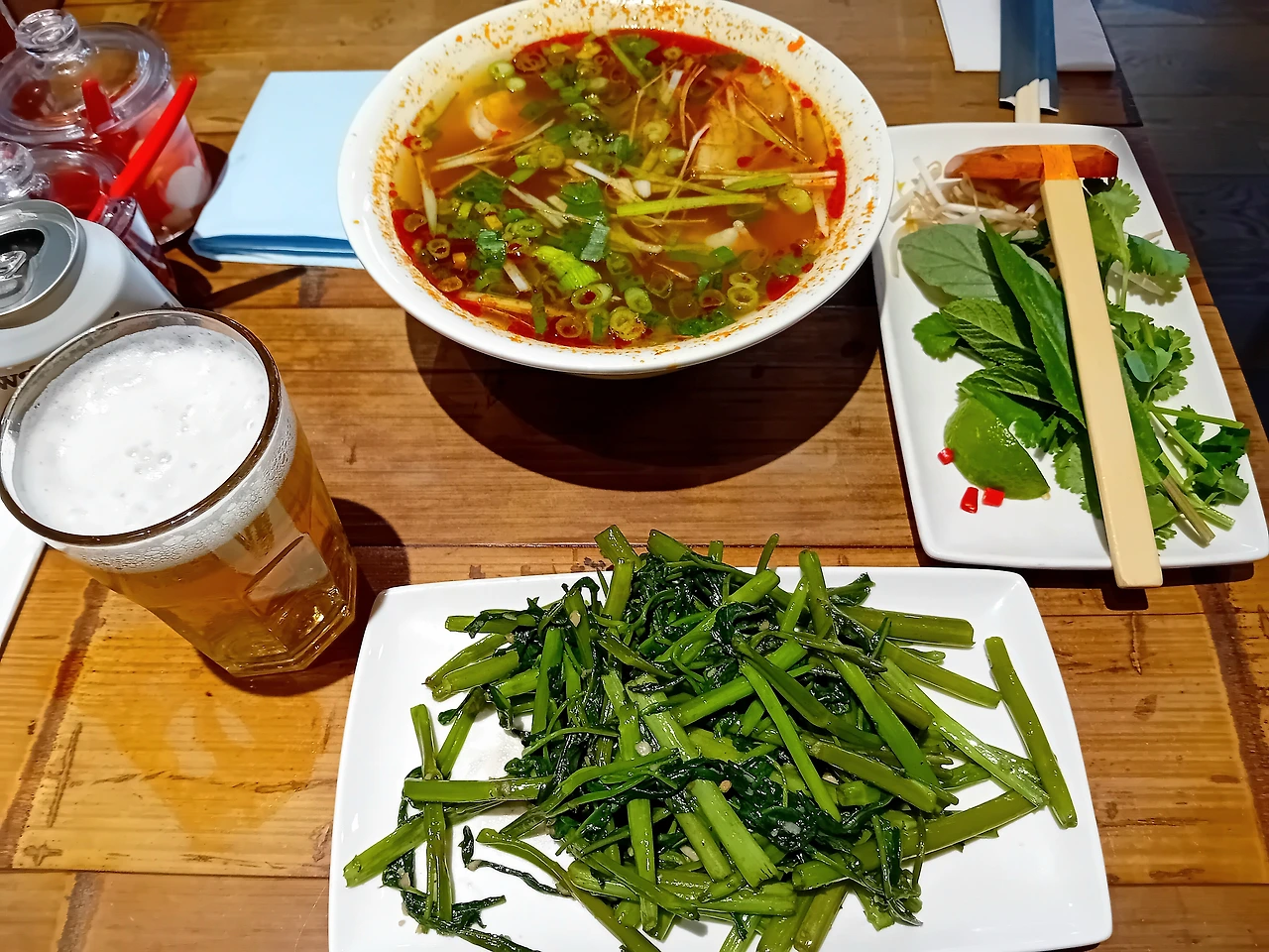 로컬 스테이크집에 먼저 갔는데 자리가 없다 그래서 근처 포 Pho에 갔다. 영국에서 어딜 가든 안전하고 만만한 곳은 포다. 공심채 morning glory 볶음이랑 매운 왕새우 쌀국수를 먹었다.