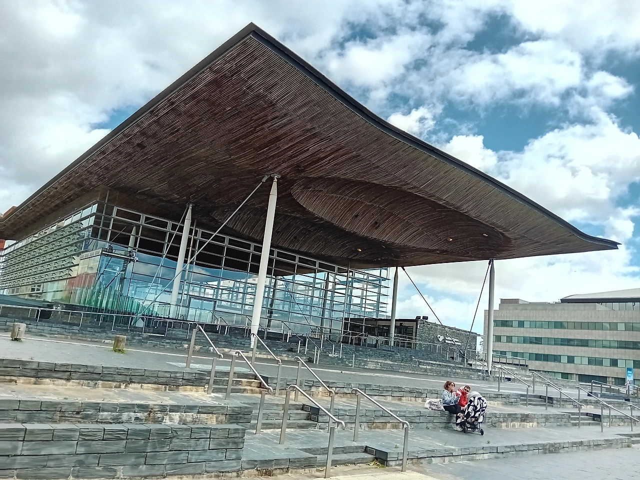 아름다운 빅토리아 시대 부두끝 건물 옆에는 엄청 대조적으로 미래적 현대 건물 세네드 The Senedd (웨일스 의회 건물)가 있다. 이런 멋있는 것은 대체 누가 만들었는가 찾아봤더니, 파리의 폼피두 센터 The Centre Pompidou도 설계한 세계적 고건축가 리처드 로저스 Richard Rogers 경이다.