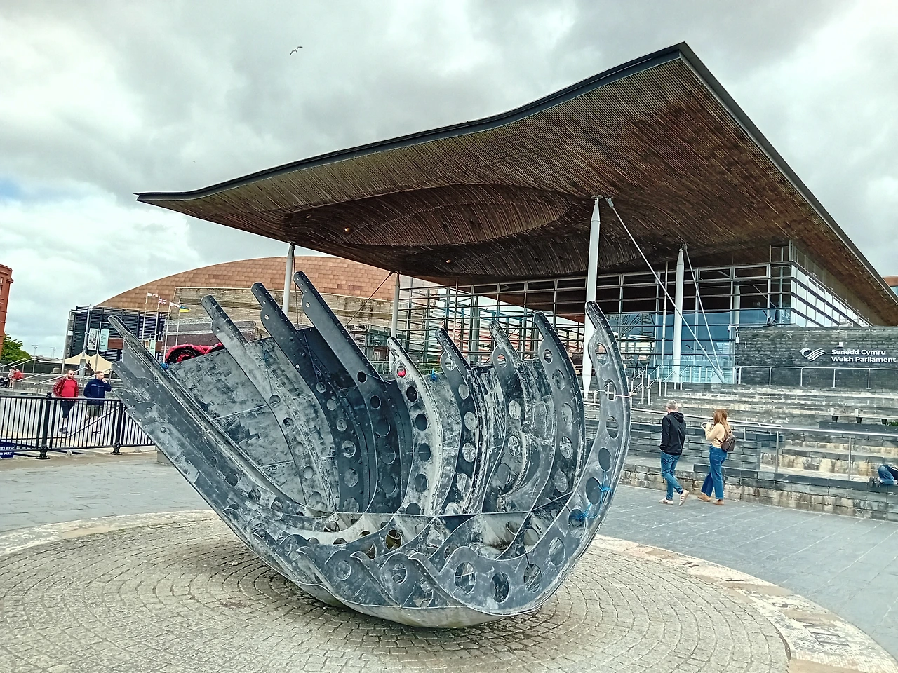 세네드 앞에는 상선 선원 추모비 Merchant Seaman’s Memorial가 있다. 멀리서 보면 선박의 일부로 보이는데 가까이서 보면 사람 얼굴이다. 아마도 제2차 세계대전 당시 카디프에서 무기 없이 식량이나 자원을 수송하던 사람들이 전사를 많이 했나 보다.