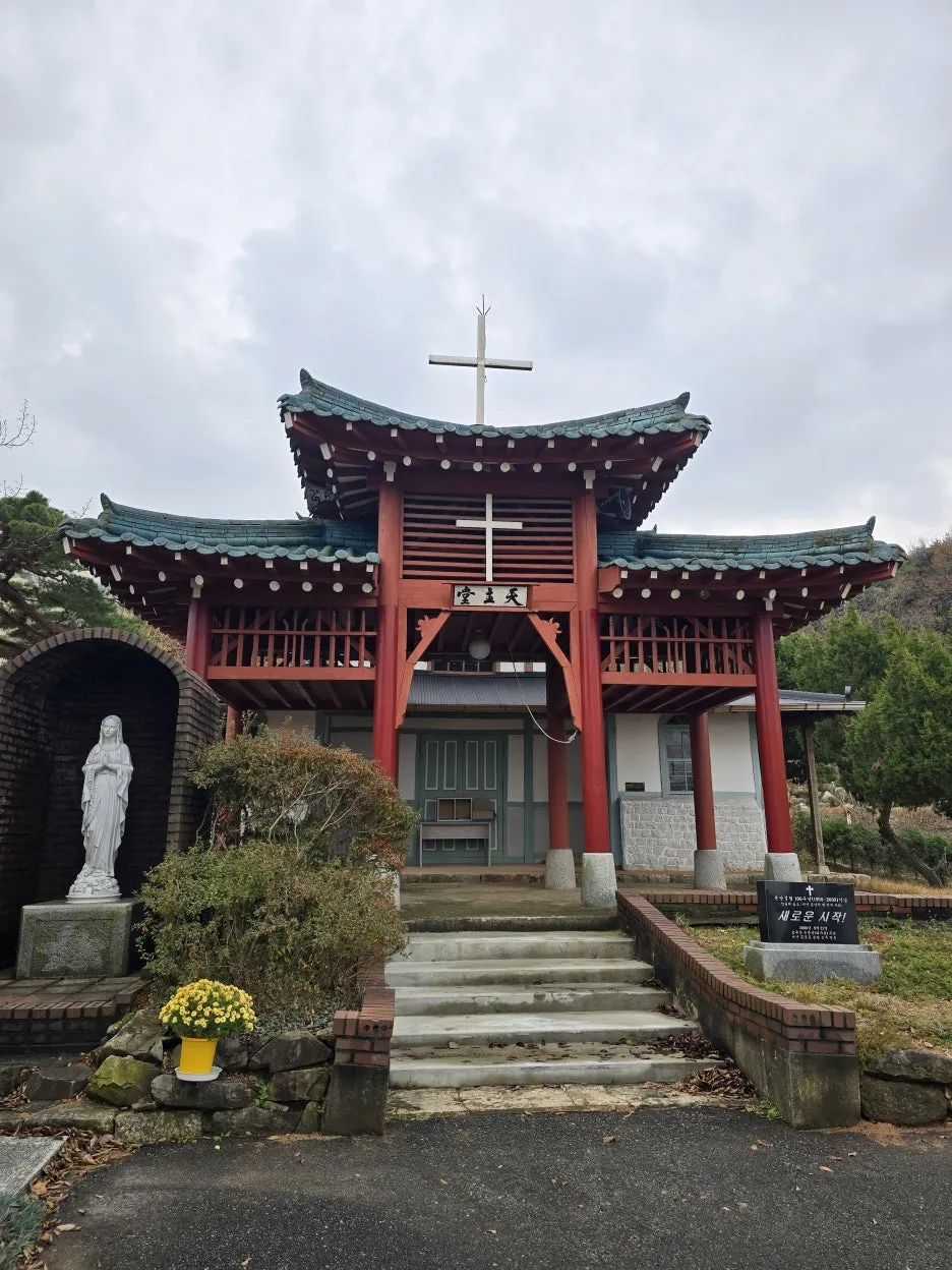 기둥과 처마는 익숙한 한국식 건물의 형태를 닮았고, 그 안에는 예수 그리스도의 고난을 담은 14처 그림과 오래된 제단이 조용히 자리를 지키고 있었습니다.